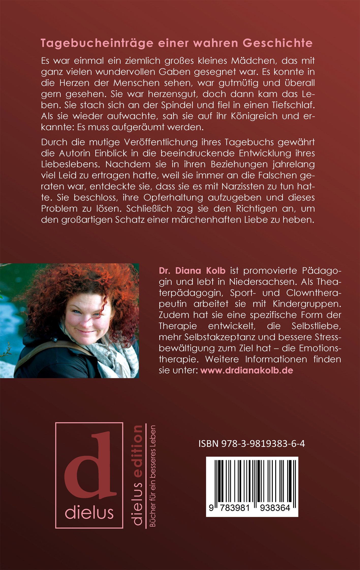 Tagebucheinträge einer wahren Geschichte:Es war einmal ein ziemlich großes kleines Mädchen, das mit ganz vielen wundervollen Gaben gesegnet war. Es konnte in die Herzen der Menschen sehen, war gutmütig und überall gern gesehen. Sie war herzensgut, doch dann kam das Leben. Sie stach sich an der Spindel und fiel in einen Tiefschlaf. Als sie wieder aufwachte, sah sie auf ihr Königreich und erkannte: Es muss aufgeräumt werden.Durch die mutige Veröffentlichung ihres Tagebuchs gewährt die Autorin Einblick in die beeindruckende Entwicklung ihres Liebeslebens. Nachdem sie in ihren Beziehungen jahrelang viel Leid zu ertragen hatte, weil sie immer an die Falschen geraten war, entdeckte sie, dass sie es mit Narzissten zu tun hatte. Sie beschloss, ihre Opferhaltung aufzugeben und dieses Problem zu lösen. Schließlich zog sie den Richtigen an, um den großartigen Schatz einer märchenhaften Liebe zu heben.