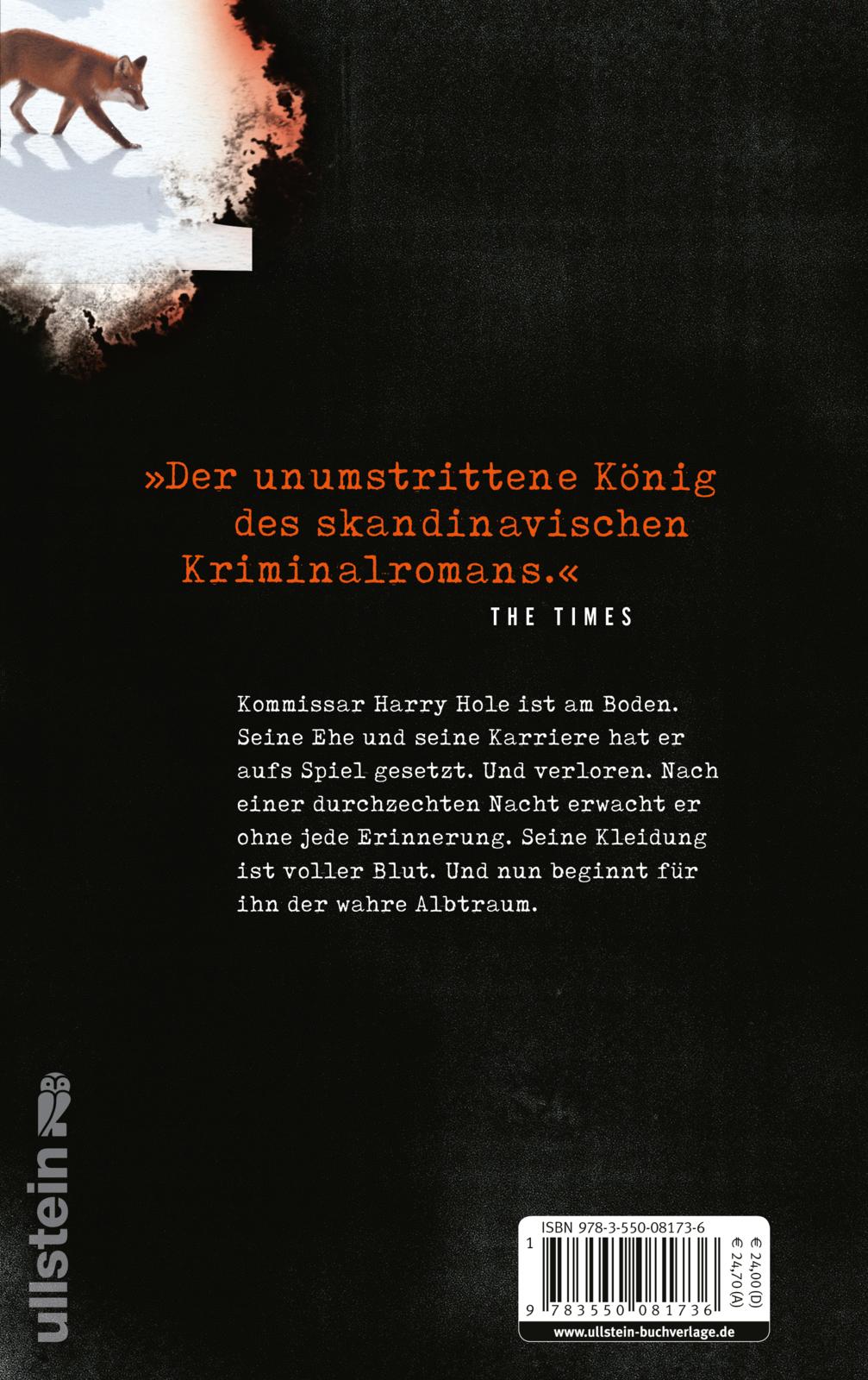 Kommissar Harry Hole ist am Boden. Seine Ehe und seine Karriere hat er aufs Spiel gesetzt. Und verloren. Nach einer durchzechten Nacht erwacht er ohne jede Erinnerung. Seine Kleidung ist voller Blut. Und nun beginnt für ihn der wahre Albtraum.
