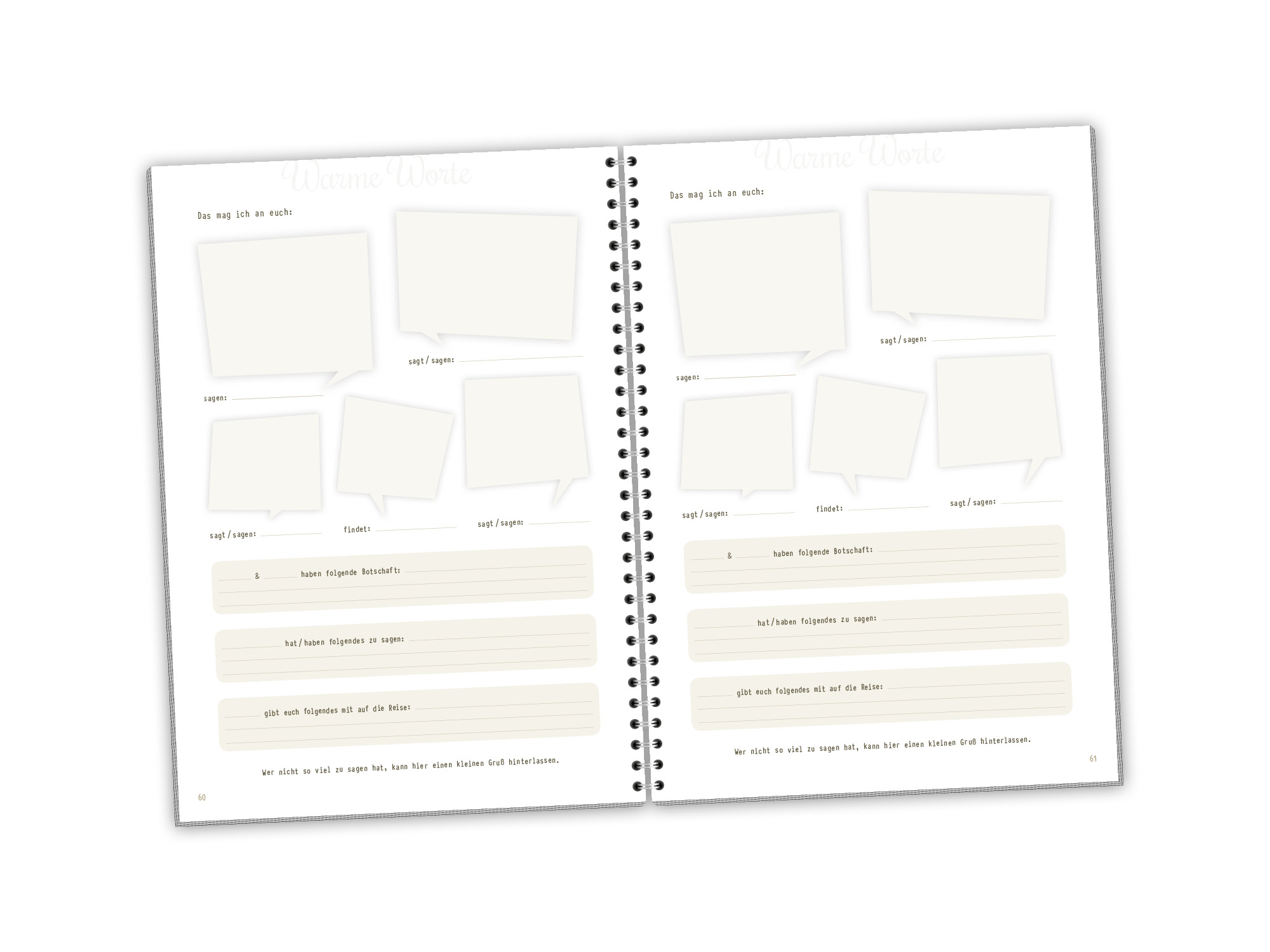 So können sich alle mit witzigen, hintergründigen und lieb gemeinten Kommentaren verewigen und dem Brautpaar ein fantastisches Erinnerungsstück an den schönsten Tag mit Ihren Lieben übergeben.