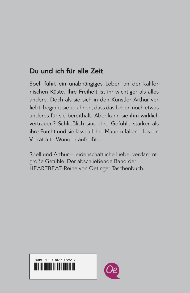 Du und ich für alle Zeit. Spell führt ein unabhängiges Leben an der kalifornischen Küste. Mit ihrem Hund Spock lebt sie in einem Wohnwagen, tagsüber fertigt sie Schmuck und abends arbeitet sie in einer Strandbar. Ihre Freiheit ist ihr wichtiger als alles andere. Doch als sie sich in den Künstler Arthur verliebt, scheint Spell ihre Unabhängigkeit auf einmal nicht mehr ganz so wichtig zu sein. Aber kann sie ihm wirklich vertrauen? Arthurs Werben und ihre Gefühle sind schließlich stärker als ihre Furcht und sie lässt all ihre Mauern fallen - bis ein Verrat alte Wunden aufreißt. Die "Heartbeat"-Reihe bietet sinnliche Lovestorys voll prickelnder Leidenschaft.