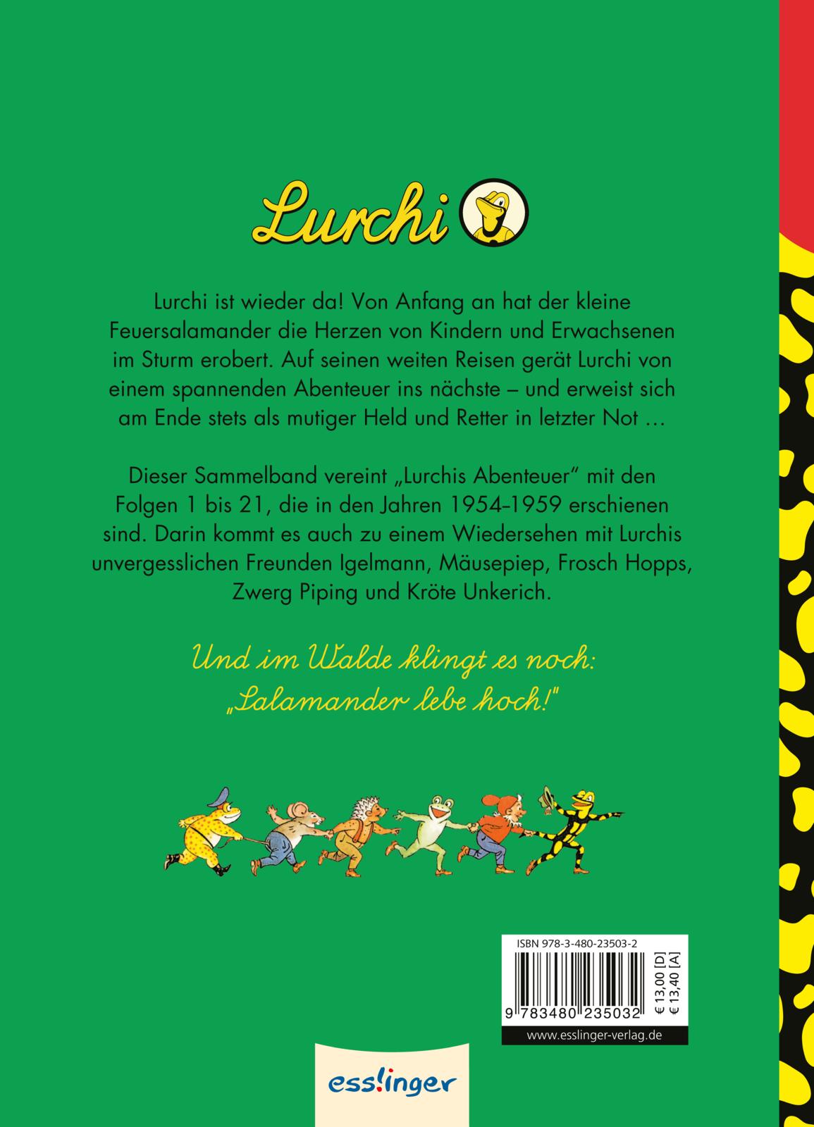 Wer kaufte als Kind nicht gerne Schuhe bei Salamander, weil es dort die tollen Comics von Lurchi gab? Auf seiner legendären Reise um die Welt stattet Lurchi unter anderem dem Zwergenkönig einen Besuch ab, versucht sich als Sportler und Ballonfahrer, erlebt ein spannendes Abenteuer auf einem Schloss und vieles mehr.