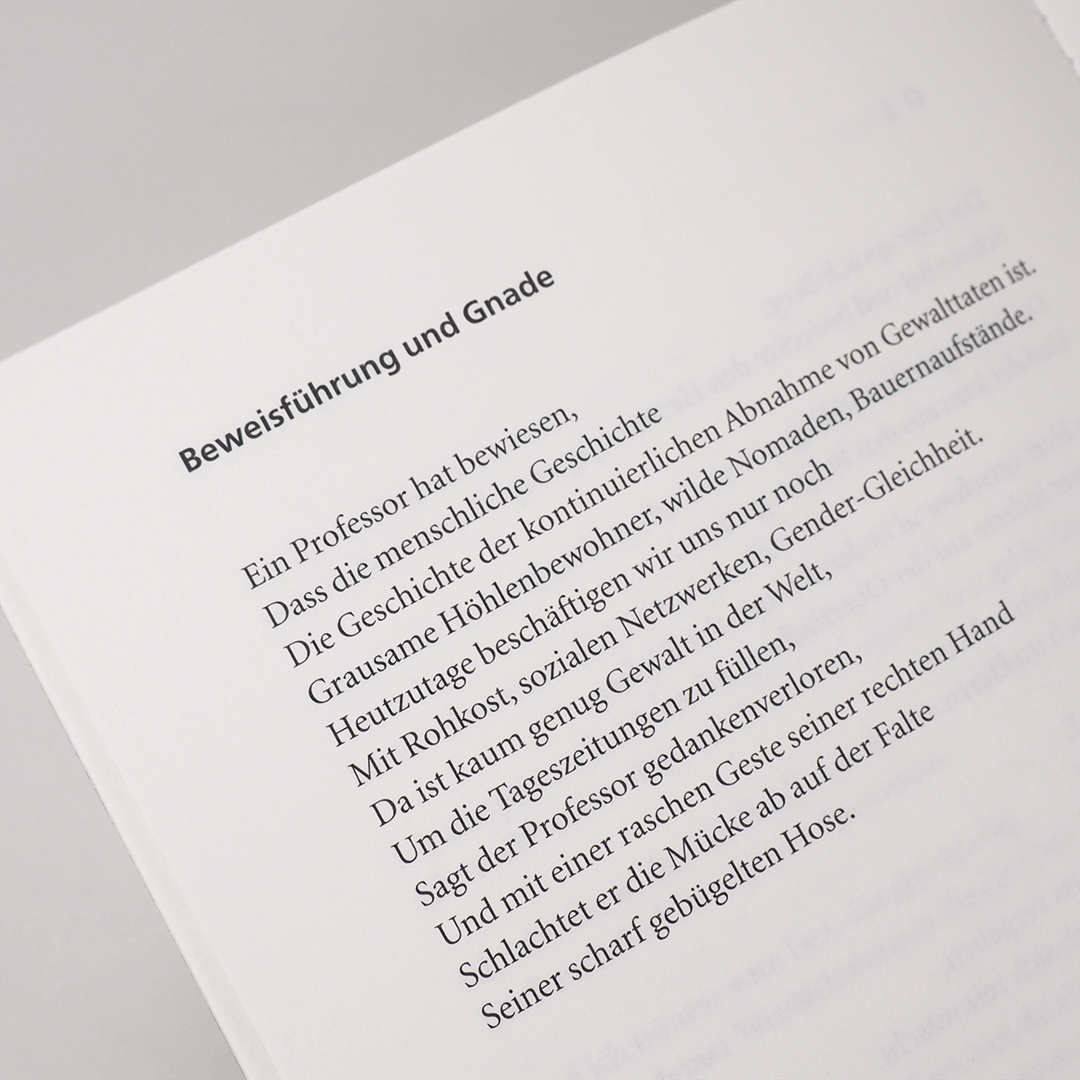 "Endlich frischt einer die Lyrik geistig auf und schreibt Gedichte, in denen das Unausweichliche und die Gnade ihren Platz einnehmen und atmen dürfen ..." Marica Bodrozic, Frankfurter Allgemeine Zeitung, 04.04.19