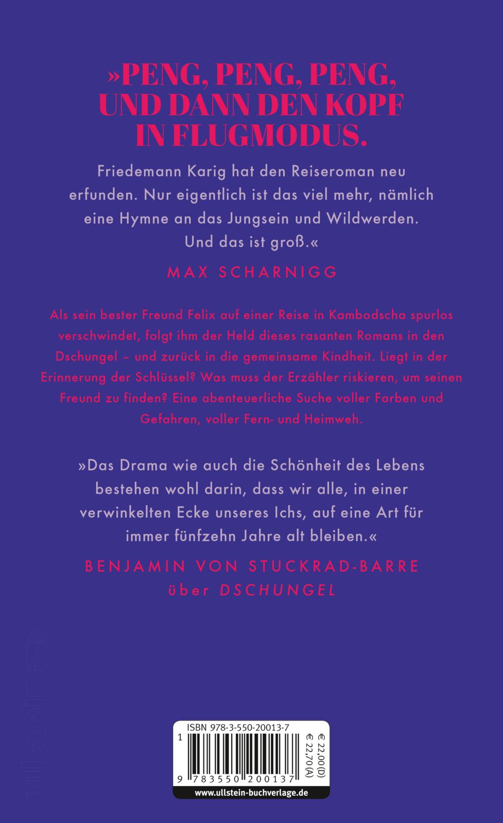 „Peng, peng, peng, und dann den Kopf in Flugmodus. Friedemann Karig hat den Reiseroman neu erfunden. Nur eigentlich ist das mehr als ein Roman, nämlich eine Hymne an das Jungsein und Wildwerden. Und das ist groß.“ Max Scharnigg