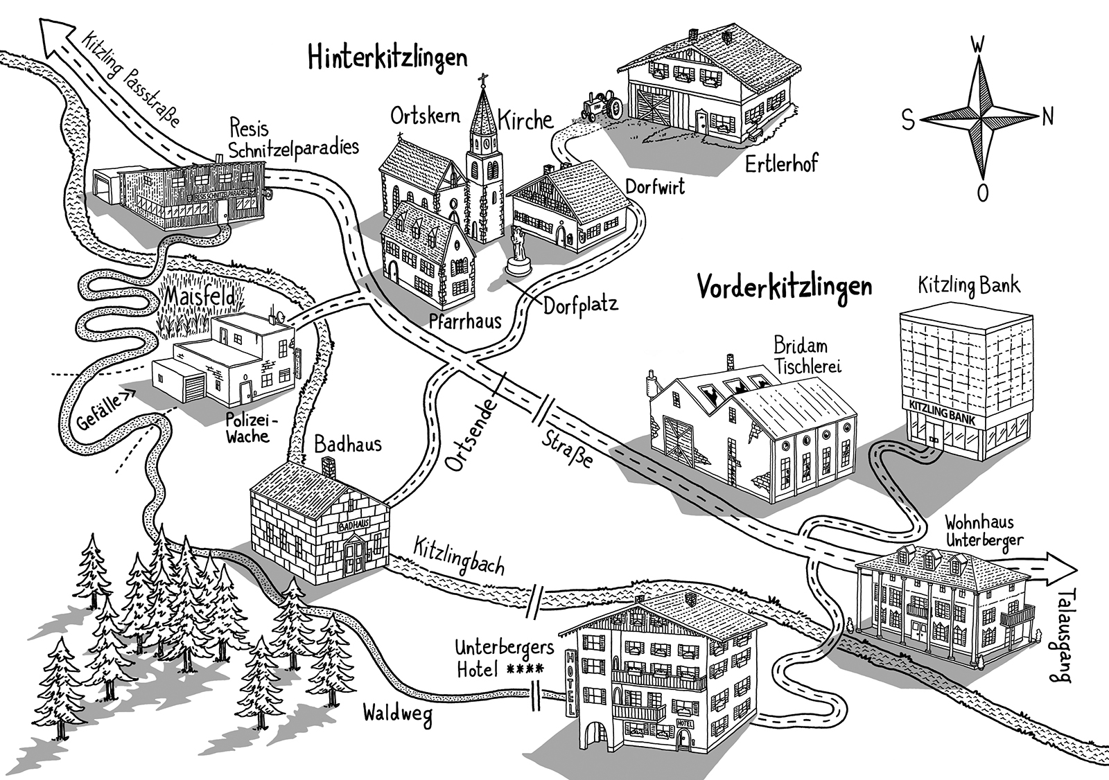 Seine Jagd nach dem Mörder führt über seltsame Dorfbewohner, einen weiteren Toten, eine außer Rand und Band geratene Natur - und zu Eva, der bildhübschen Tochter der Schnitzelwirtin.