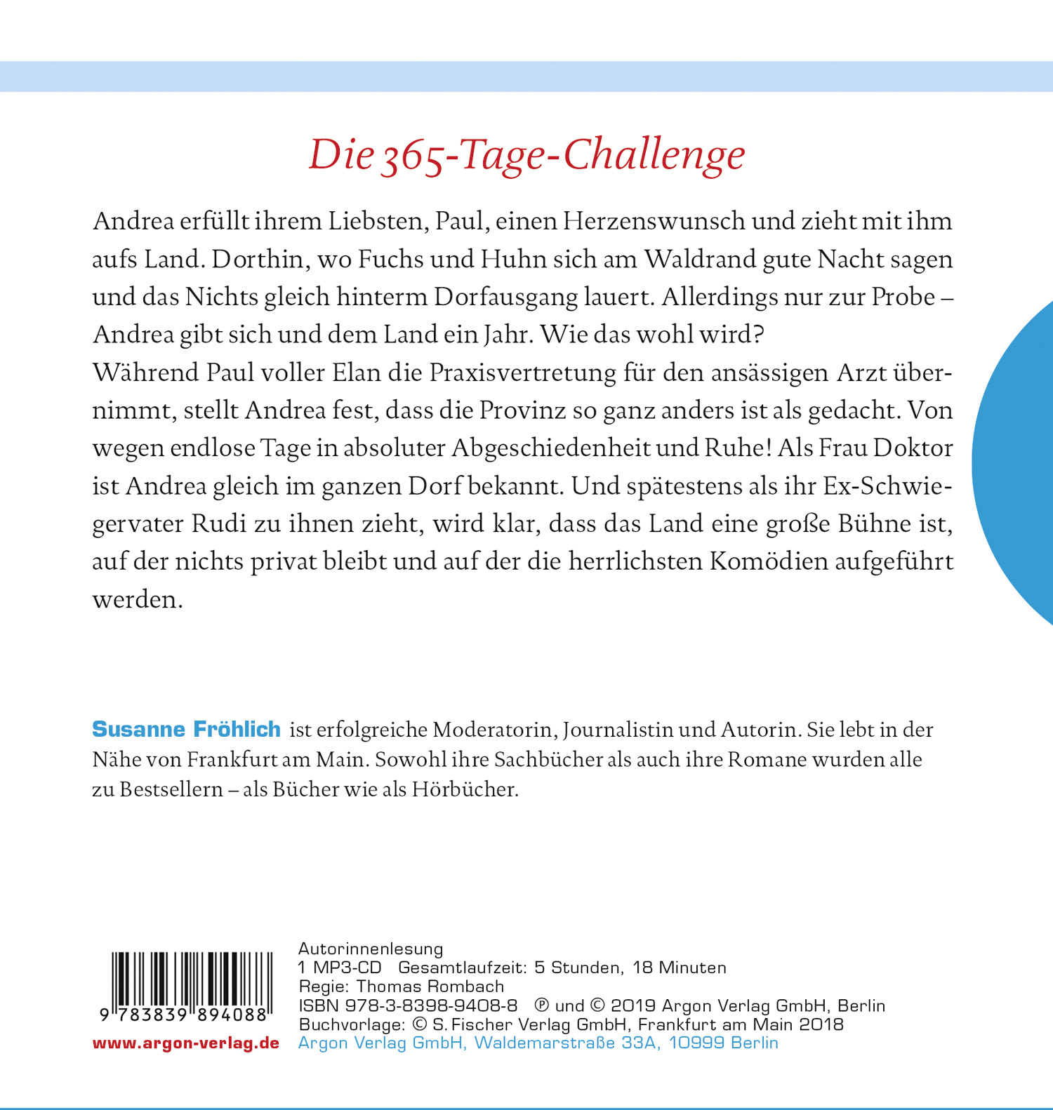 Andrea erfüllt Paul einen Herzenswunsch und zieht mit ihm aufs Land. Und zwar wirklich aufs Land - dahin, wo Fuchs und Hase sich am Waldrand Gute Nacht sagen, der nächste Supermarkt eine halbe Autostunde entfernt ist und die Feldwege sich am Dorfausgang in der Unendlichkeit verlieren. Allerdings nur zur Probe für ein Jahr! Wie das wohl wird? Während Paul voller Elan die Praxisvertretung für den ansässigen Orthopäden übernimmt, muss Andrea feststellen, dass das Landleben gar nicht so ist, wie sie sich das vorgestellt hat: Als Frau Doktor ist sie gleich im ganzen Dorf bekannt, und spätestens als ihr Ex-Schwiegervater Rudi zu ihnen zieht, wird klar, dass von Privatleben hier keine Rede sein kann.