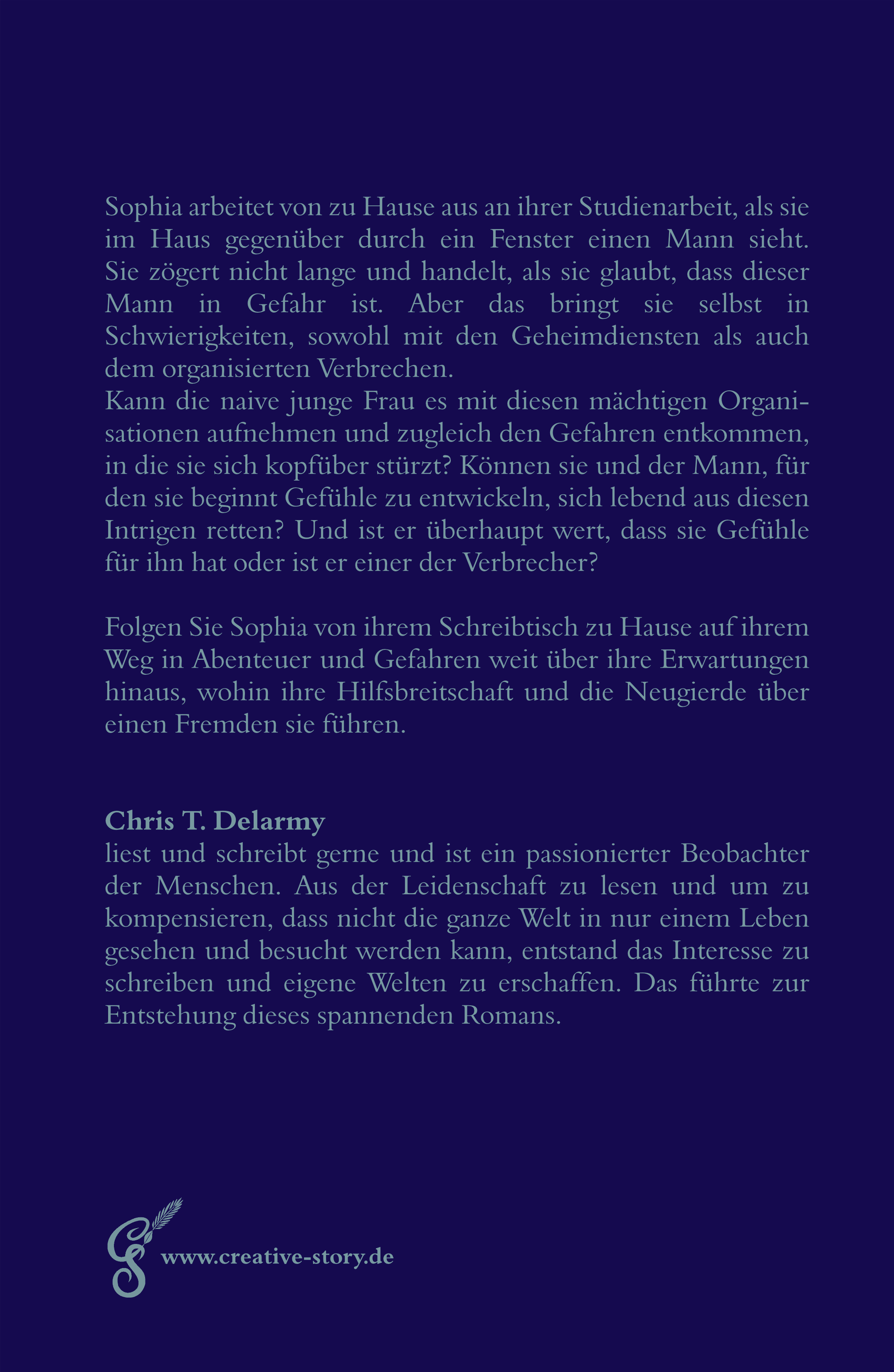 Chris T. Delarmy liest und schreibt gerne und ist ein passionierter Beobachter der Menschen. Aus der Leidenschaft zu lesen und um zu kompensieren, dass nicht die ganze Welt in nur einem Leben gesehen und besucht werden kann, entstand das Interesse zu schreiben und eigene Welten zu erschaffen.