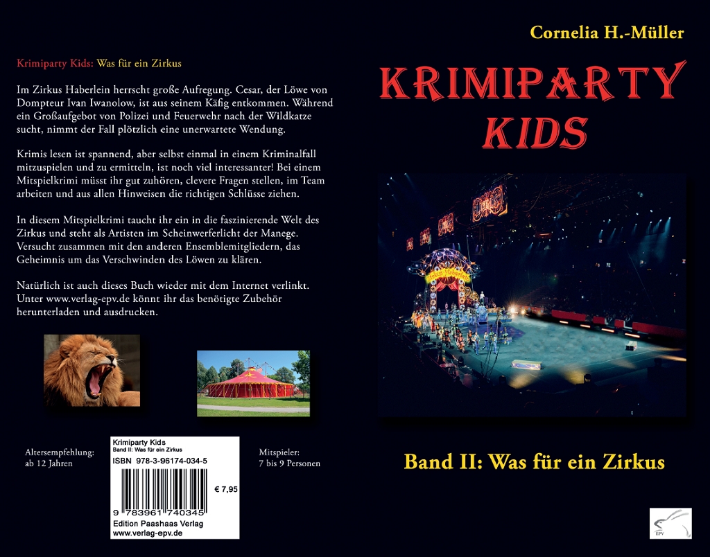 | Schlagworte | Edition Paashaas Verlag • Familienspiel • H.-Müller • Kindergeburtstag • Kinderparty • Krimidinner • Krimi für Kinder • Krimiparty • Krimiparty Kids • Krimispiel • Löwe • Mitspielkrimi • Rätsel • Rätselkrimi • Spiele für drinnen • Zirkus |