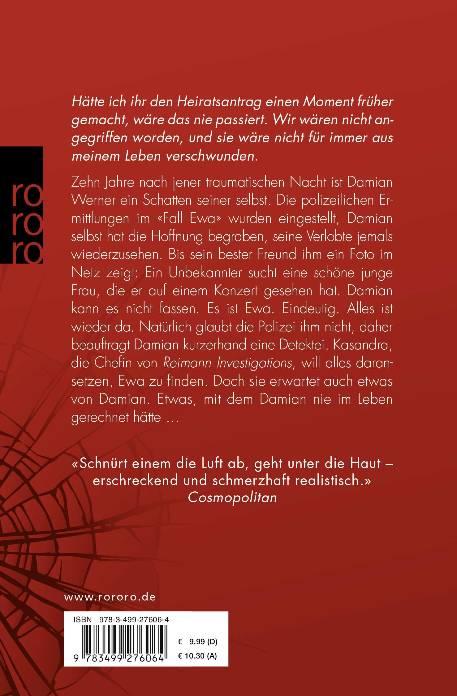 Zehn Jahre nach dem Verschwinden seiner Verlobten Ewa ist Damian Werner ein Schatten seiner selbst. Er ist sich sicher, dass er sie nie wiedersehen wird. Eines Tages stößt er jedoch auf eine Spur - jemand sucht nach Ewa und hat ein Bild von ihr ins Netz gestellt. Kurz darauf postet der Unbekannte ein weiteres Foto. Wer sucht die junge Frau? Und kann es nach all den Jahren wirklich Ewa sein? Damian und Ewa waren bereits als Kinder unzertrennlich, sie hatten keine Geheimnisse voreinander. Doch als Damian weitere Nachforschungen anstellt, muss er feststellen, dass er seine große Liebe wohl doch nicht so gut kannte, wie er immer gedacht hatte.