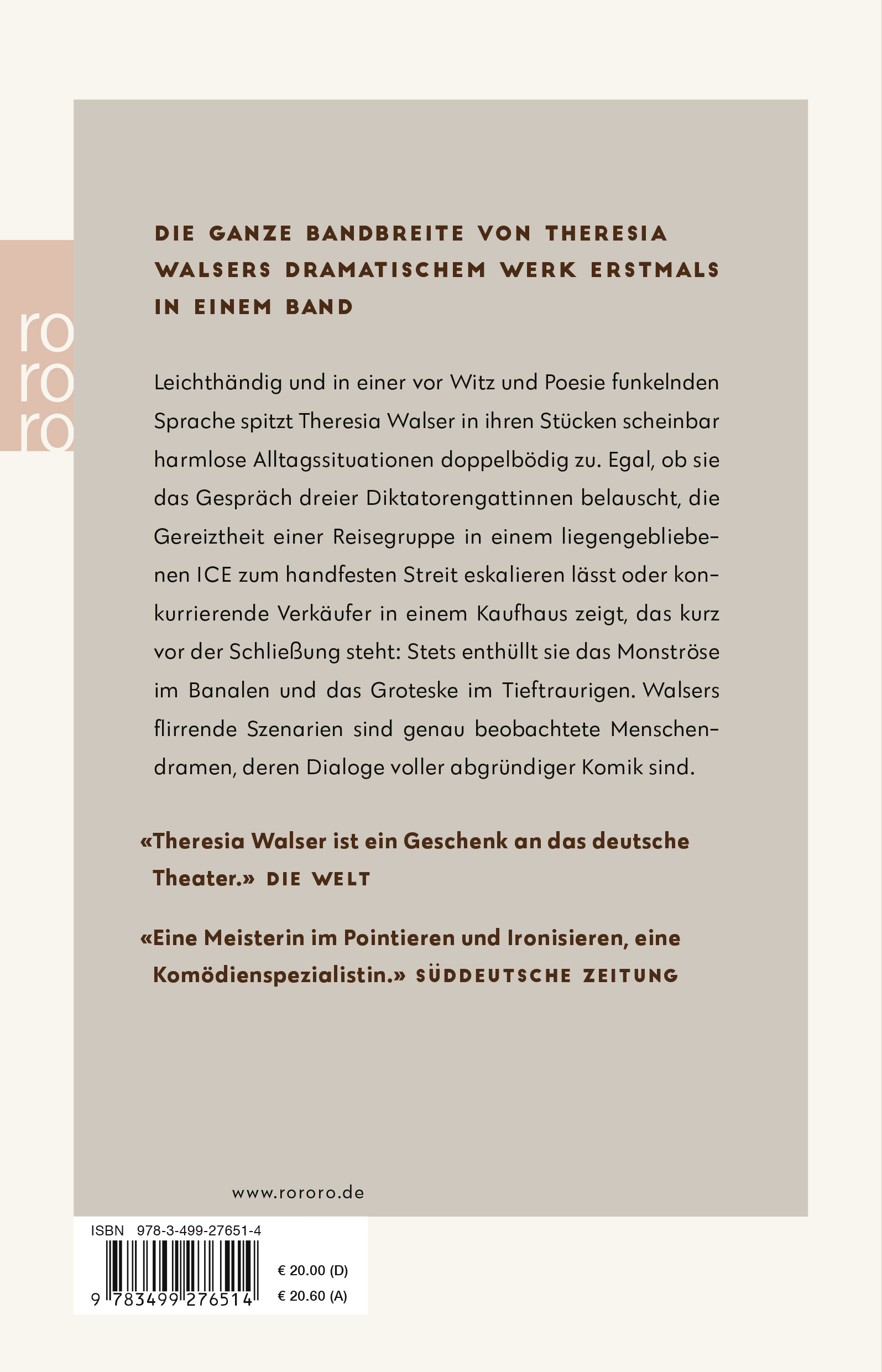 »Theresia Walser ist ein Geschenk an das deutsche Theater.« Die Welt