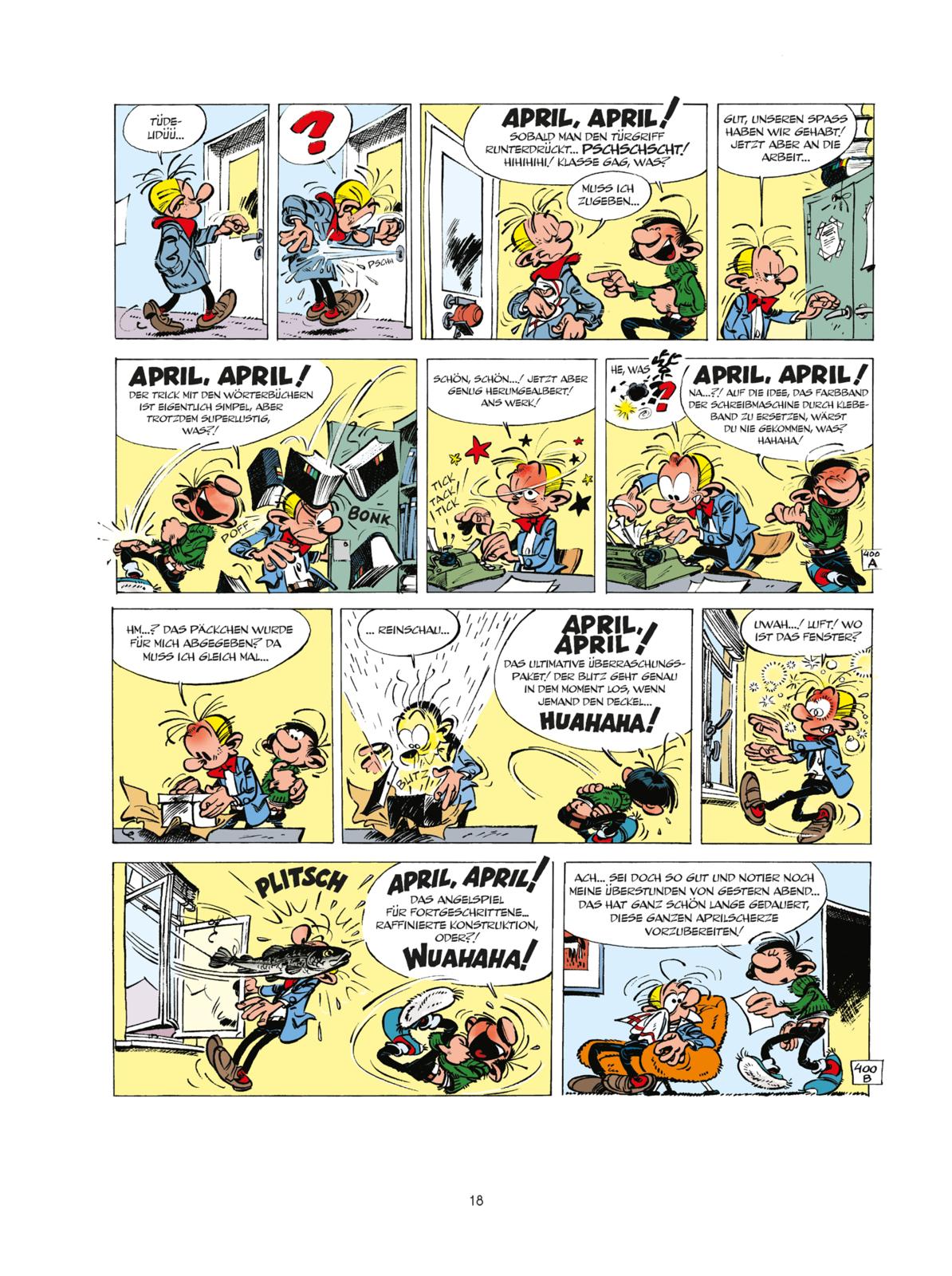 Esskastanien im Büro rösten? Aktenschränke automatisieren? Bienenstöcke im Schreibtisch unterbringen? Kein Problem, solange man Gaston heißt! Der verrückteste Bürobote seit Erfindung der wiederverwendbaren Büroklammer ist zurück! Er bringt Chaos und Unordnung in die Räume des Carlsen Verlags. Fantasio steuert immer knapp am Nervenzusammenbruch entlang und muss jeden Tag verhindern, dass die Verlagsbüros von Gaston geflutet, gesprengt oder niedergebrannt werden. Ein echter Höllenjob!