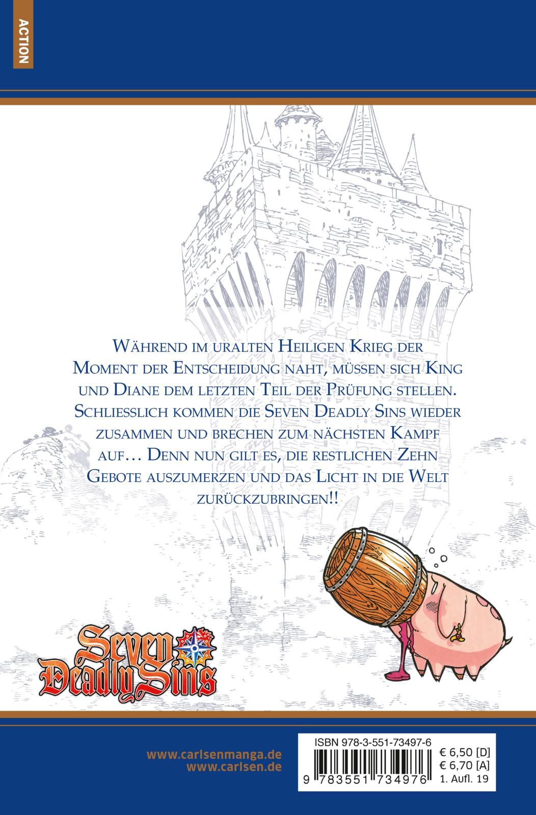 Während im uralten Heiligen Krieg der Moment der Entscheidung naht, müssen sich King und Diane dem letzten Teil der Prüfung stellen. Schließlich kommen die Seven Deadly Sins wieder zusammen und brechen zum nächsten Kampf auf... Denn nun gilt es, die restlichen Zehn Gebote auszumerzen und das Licht in die Welt zurückzubringen!!