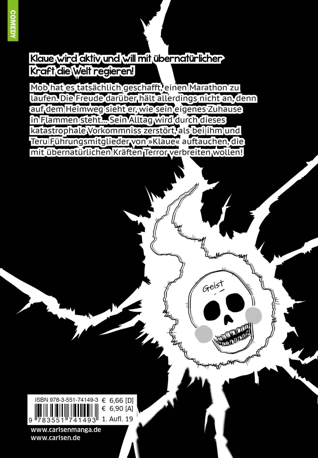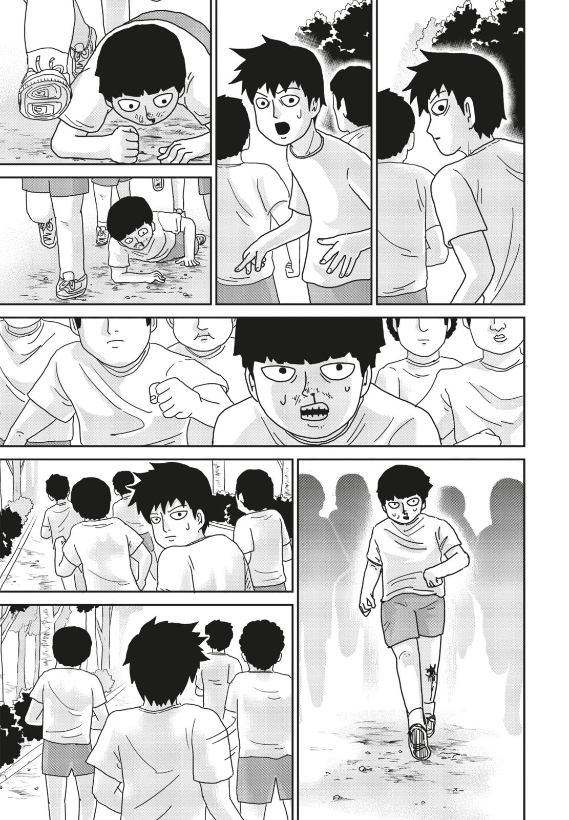 Mob hat es tatsächlich geschafft, einen Marathon zu laufen. Die Freude darüber hält allerdings nicht an, denn auf dem Heimweg sieht er, wie sein eigenes Zuhause in Flammen steht... Sein Alltag wird durch dieses katastrophale Vorkommniss zerstört, als bei ihm und Teru Führungsmitglieder von »Klaue« auftauchen, die mit übernatürlichen Kräften Terror verbreiten wollen!