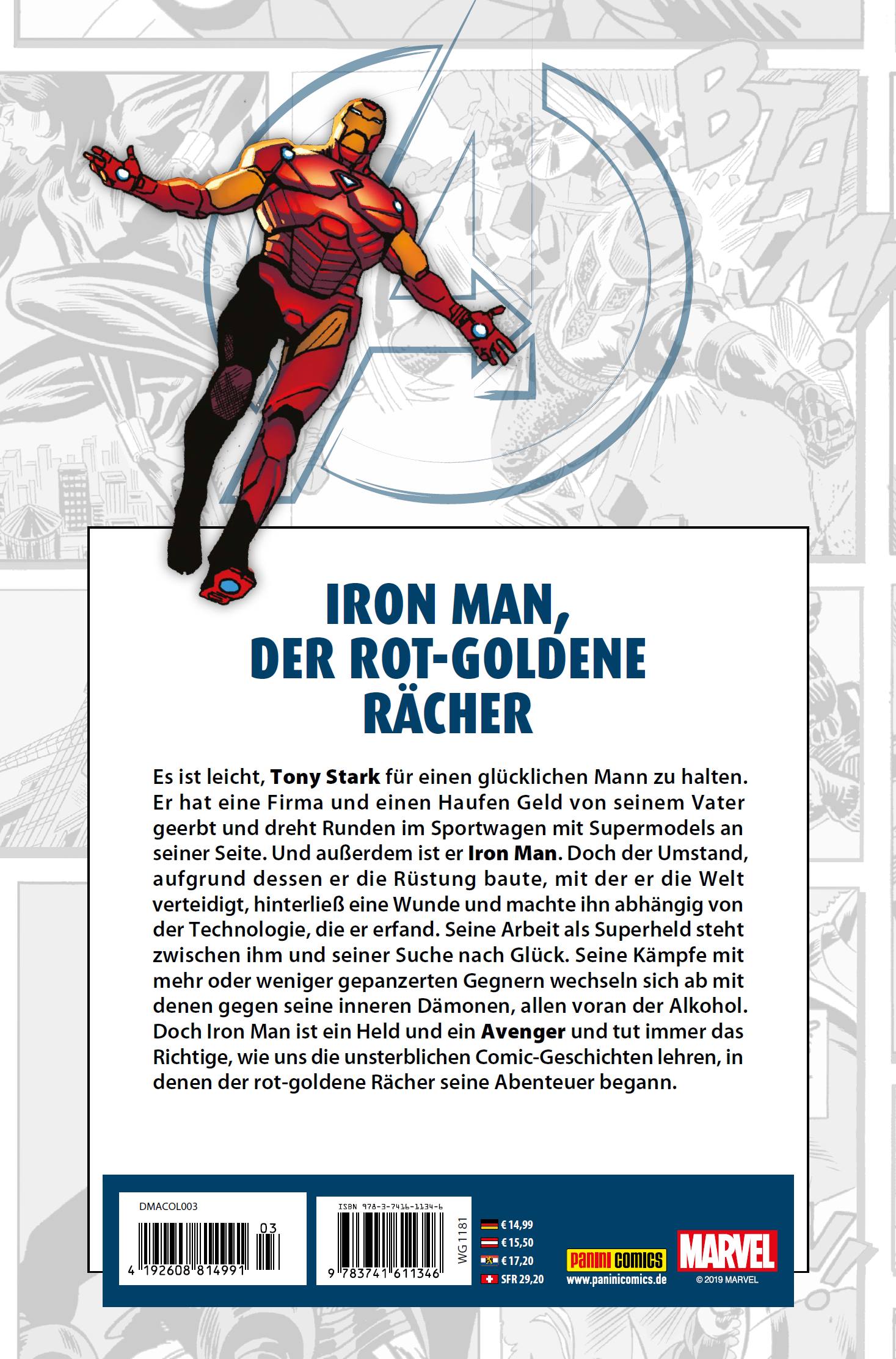 Es ist leicht, Tony Stark für einen glücklichen Mann zu halten. Er hat eine Firma und einen Haufen Geld von seinem Vater geerbt und dreht Runden im Sportwagen mit Supermodels an seiner Seite. Und außerdem ist er Iron Man. Doch der Umstand, aufgrund dessen er die Rüstung baute, mit der er die Welt verteidigt, hinterließ eine Wunde und machte ihn abhängig von der Technologie, die er erfand. Seine Arbeit als Superheld steht zwischen ihm und seiner Suche nach Glück. Seine Kämpfe mit mehr oder weniger gepanzerten Gegnern wechseln sich ab mit denen gegen seine inneren Dämonen, allen voran der Alkohol. Doch Iron Man ist ein Held und ein Avenger und tut immer das Richtige, wie uns die unsterblichen Comic-Geschichten lehren, in denen der rot-goldene Rächer seine Abenteuer begann.