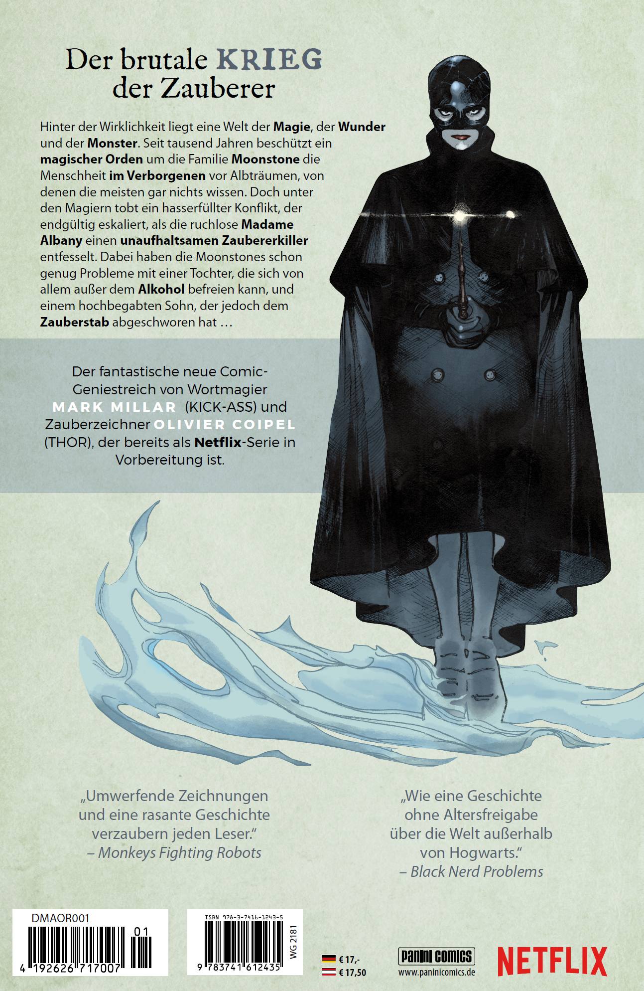 | Schlagworte | Comic • Comics • F19 • F2019 • Frühjahr19 • Frühjahr2019 • Kick-Ass • Krieg der Zauberer • Madame Albany • Magie • Magier • Mark Millar • Monster • Moonstone • Netflix • Panini Comics • Paninicomis • Regean • Urban-Fantasy • Zauberer • Zaubererfamilie • Zaubererkiller • Zauberstab |
