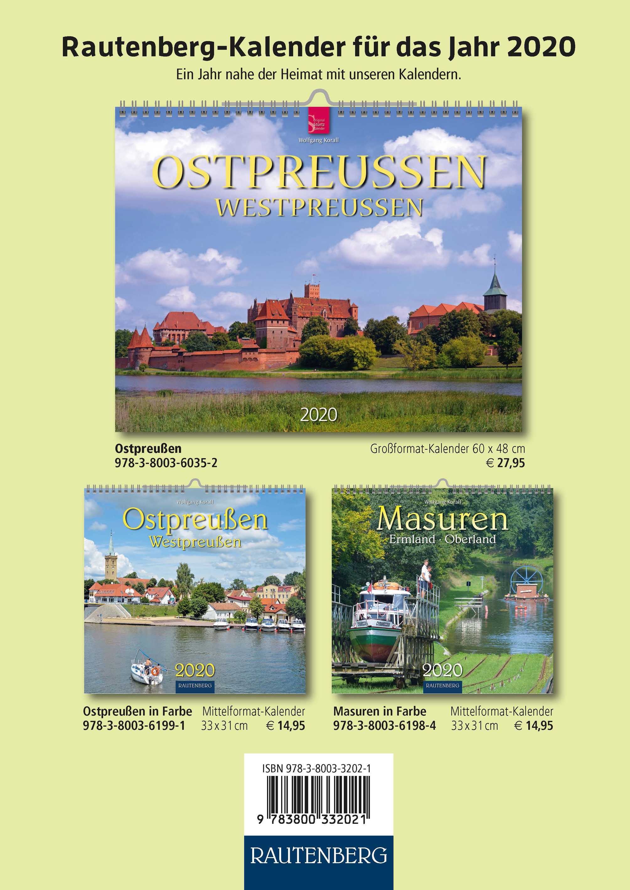 | Schlagworte | Agnes Miegel • Allenstein • Anekdoten • Baltikum • Elbing • Gumbinnen • Insterburg • Kalender • Kalenderbuch • Kalenderbuch 2020 • Kalender Ostpreußen 2020 • Königsberg • Kurische Nehrung • Kurisches Haff • Masuren • Memel • Memelland • Nidden • Ostpreußen • Ostpreußen 2020 • Ostpreußen Kalender 2020 • Ostpreußen Literatur • Ostpreußische Geschichten • Ostpreußische Künstler • Ostpreußische Kurzgeschichten • ostpreußische Literatur • Ostpreußischer Taschenkalender • Ostpreußischer Terminkalender • Prussen • Rastenburg • Ruth Geede • Samland • Taschenkalender Ostpreußen • Terminkalender Ostpreußen |