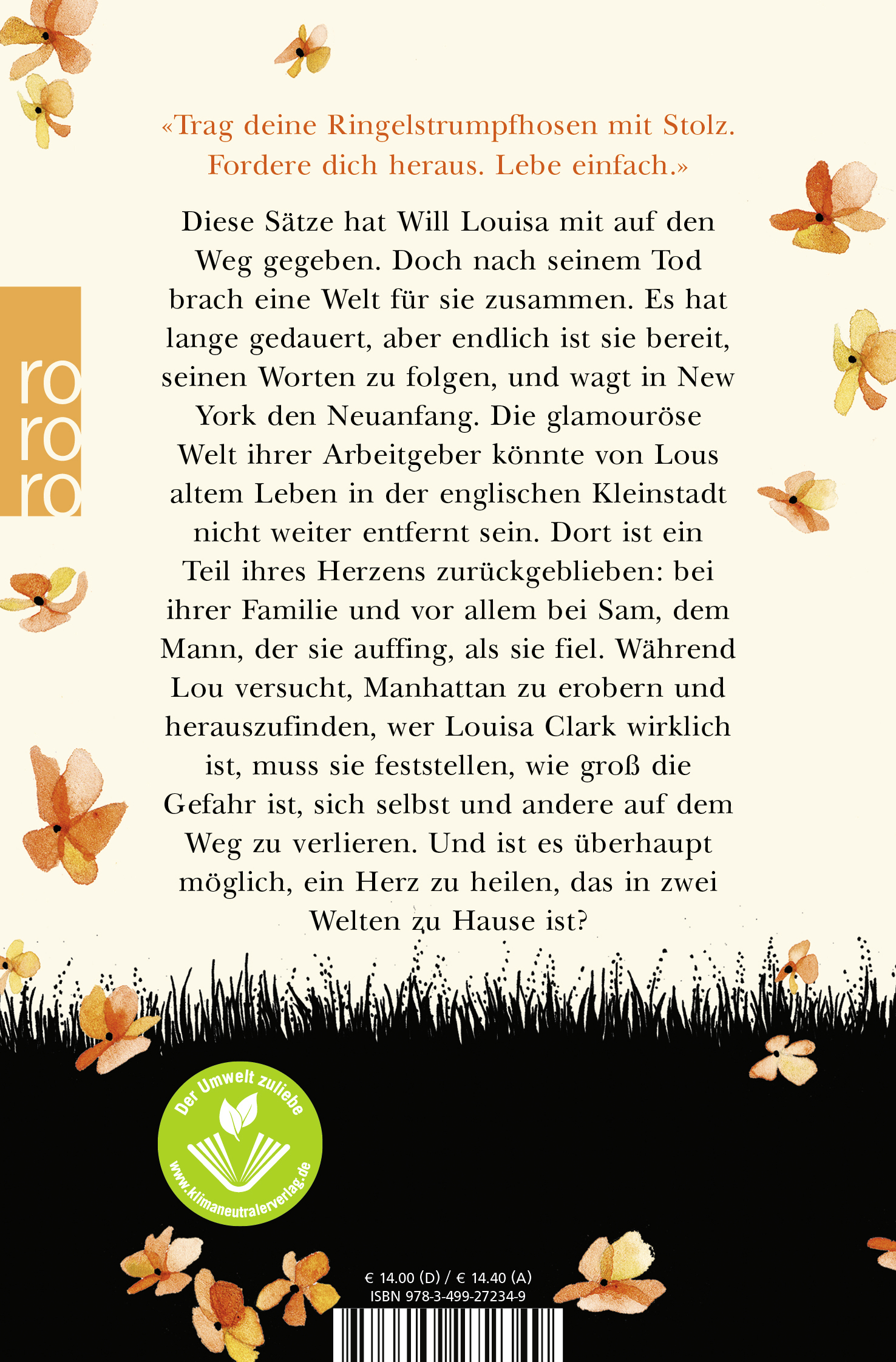 Die glamouröse Welt ihrer Arbeitgeber könnte von Lous altem Leben in der englischen Kleinstadt nicht weiter entfernt sein. Dort ist ein Teil ihres Herzens zurückgeblieben: bei ihrer liebenswert chaotischen Familie und vor allem bei Sam, dem Mann, der sie auffing, als sie fiel.