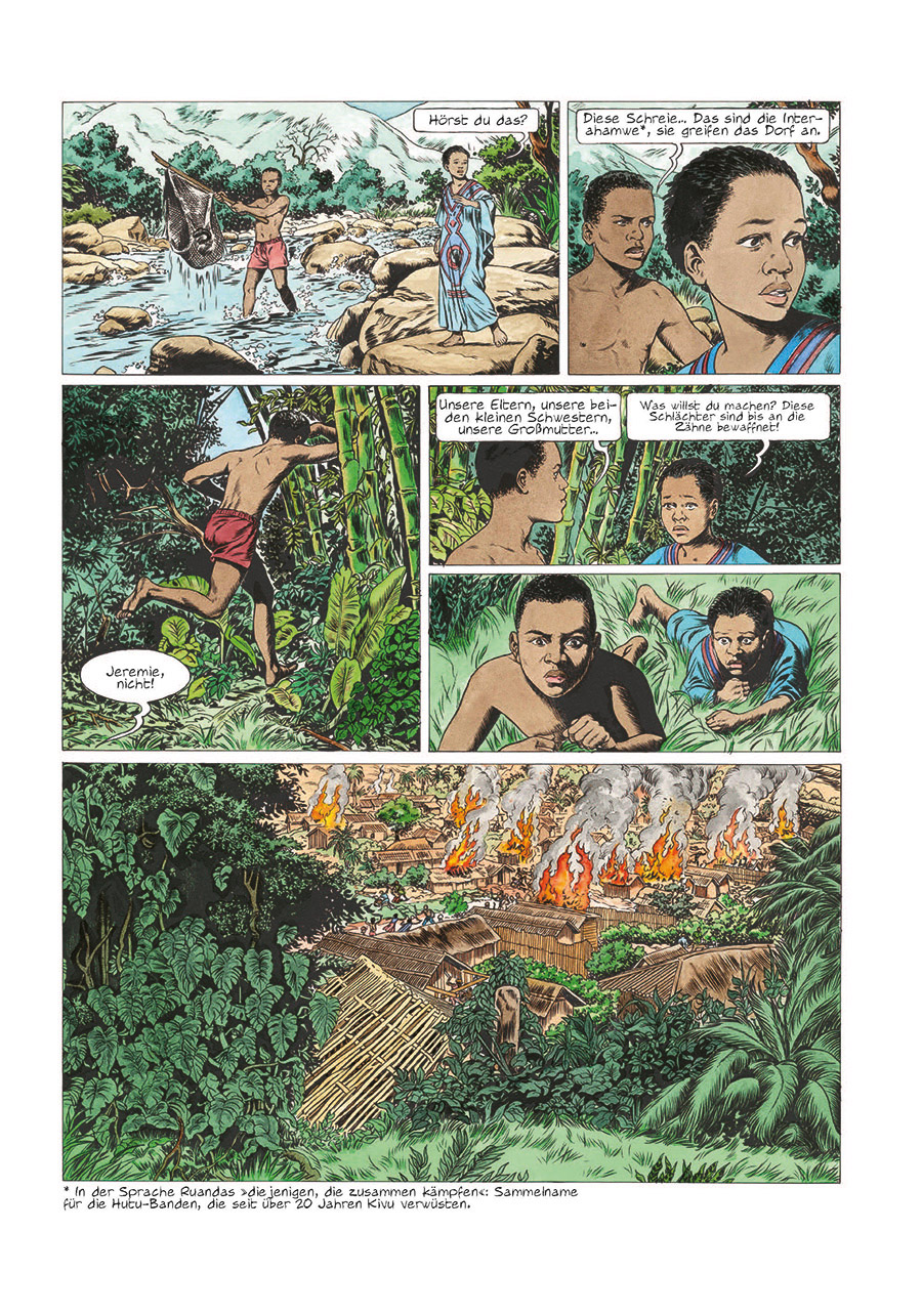 Mit dem Tatendrang der Jugend macht sich der Ingenieur François Daans im Auftrag seines Konzerns auf den Weg in die Kongo-Provinz Kivu. Dort soll er die Leitung der Coltangewinnung übernehmen, deren vormaliger Förderleiter unter mysteriösen Umständen verstorben ist. François ist wohl bewusst, dass Coltan - ein Mineral, ohne das unsere moderne Kommunikationstechnologie unvorstellbar wäre - im Kongo auf Kosten der Bevölkerung und zugunsten brutaler Milizen gefördert wird. Aber auf das Grauen, das ihn erwartet, und die schiere Verachtung jeglicher Menschlichkeit konnte ihn nichts vorbereiten... Der legendäre Jean van Hamme selbst widmet sich mit "Kivu" einem brennenden Thema unserer Zeit: der schmutzigen Förderung seltener Ressourcen ohne Rücksicht auf humanistische und ökologische Folgen. Heraus kommt ein zynischer, dichter Thriller, dessen Botschaft durch Christophe Simons klaren Strich umso plastischer wird.