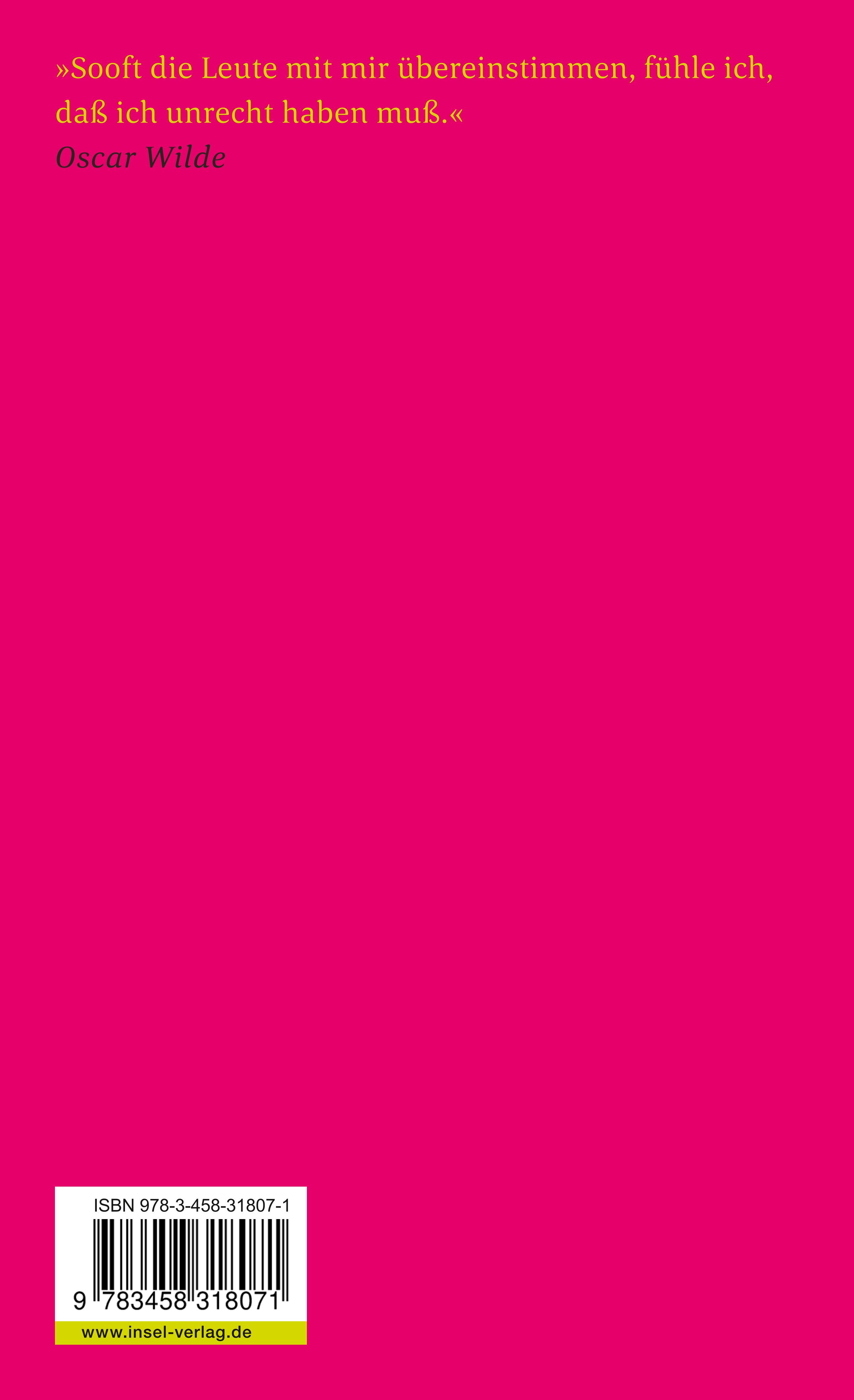 lt;p>Thomas Mann sah Wilde vereint mit Nietzsche in einer »Zeit des ersten Anrennens der europäischen Intelligenz gegen die verheuchelte Moral des viktorianischen, des bürgerlichen Zeitalters«. Die it-Ausgabe gibt einen Querschnitt durch das Werk des Dichters, der nach Sarah Bernhardt »der größte Schauspieler seiner Zeit war«.