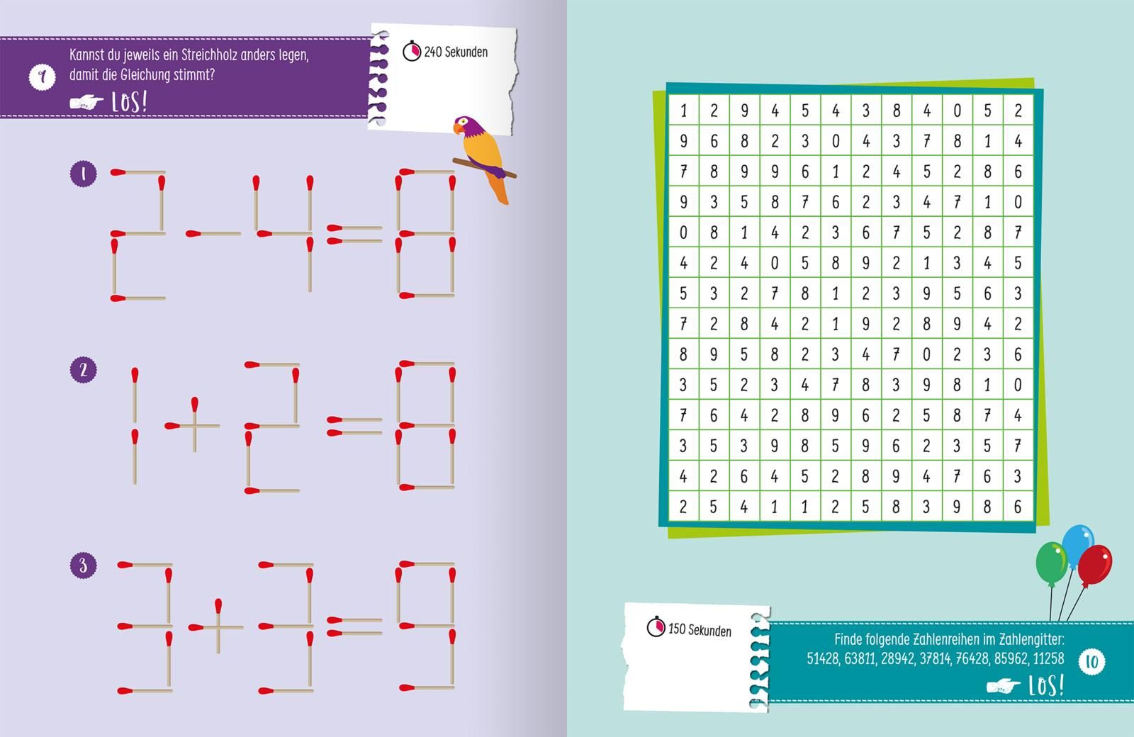 - Abwechslungsreich: Verzwickte Labyrinthe, Suchaufgaben, Knobeleien, Kreuzworträtsel und vieles mehr