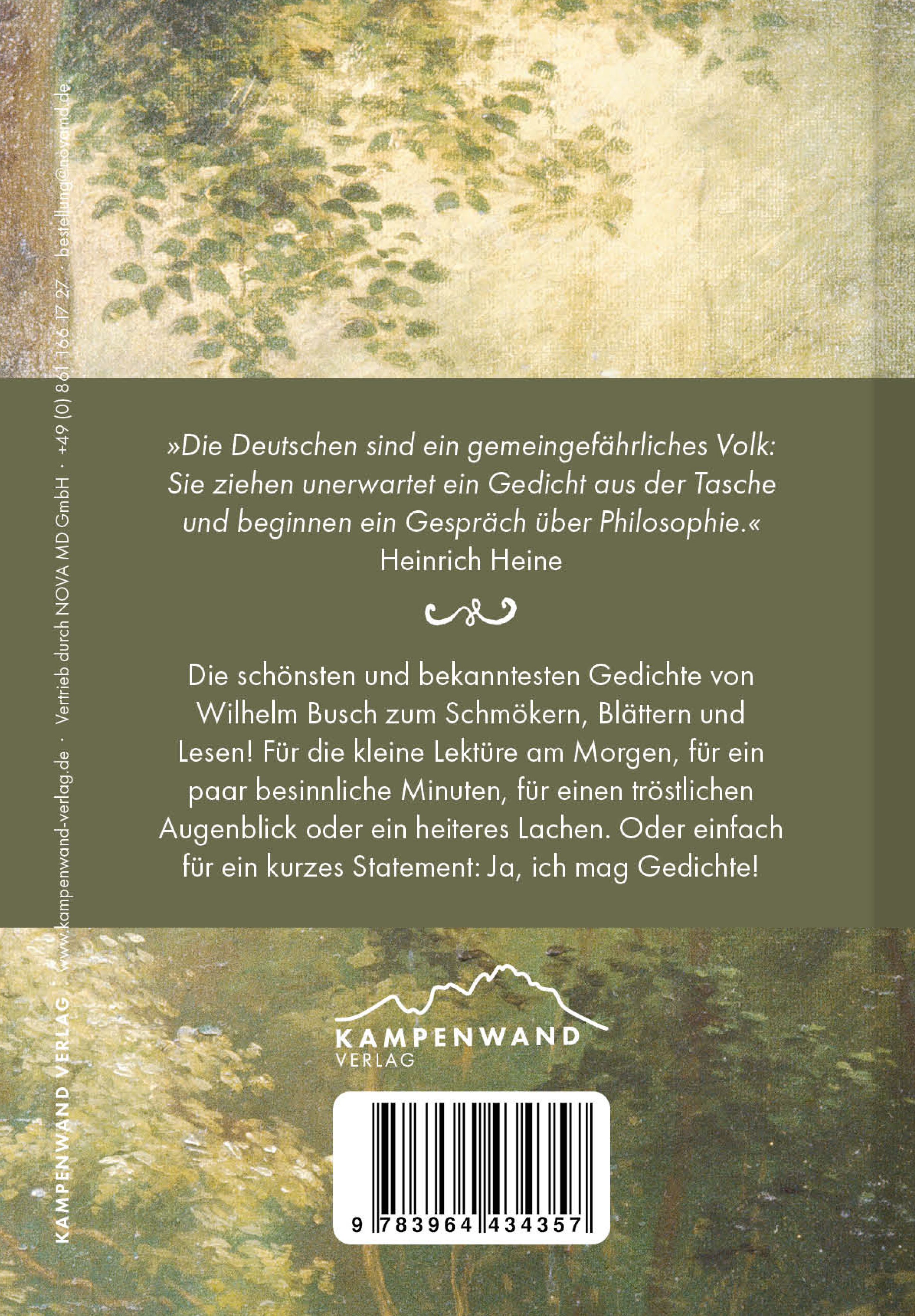 Die schönsten und bekanntesten Gedichte von Wilhelm Busch zum Schmökern, Blättern und Lesen! Für die kleine Lektüre am Morgen, für ein paar besinnliche Minuten, für einen tröstlichen Augenblick oder ein heiteres Lachen. Oder einfach für ein kurzes Statement: Ja, ich mag Gedichte!