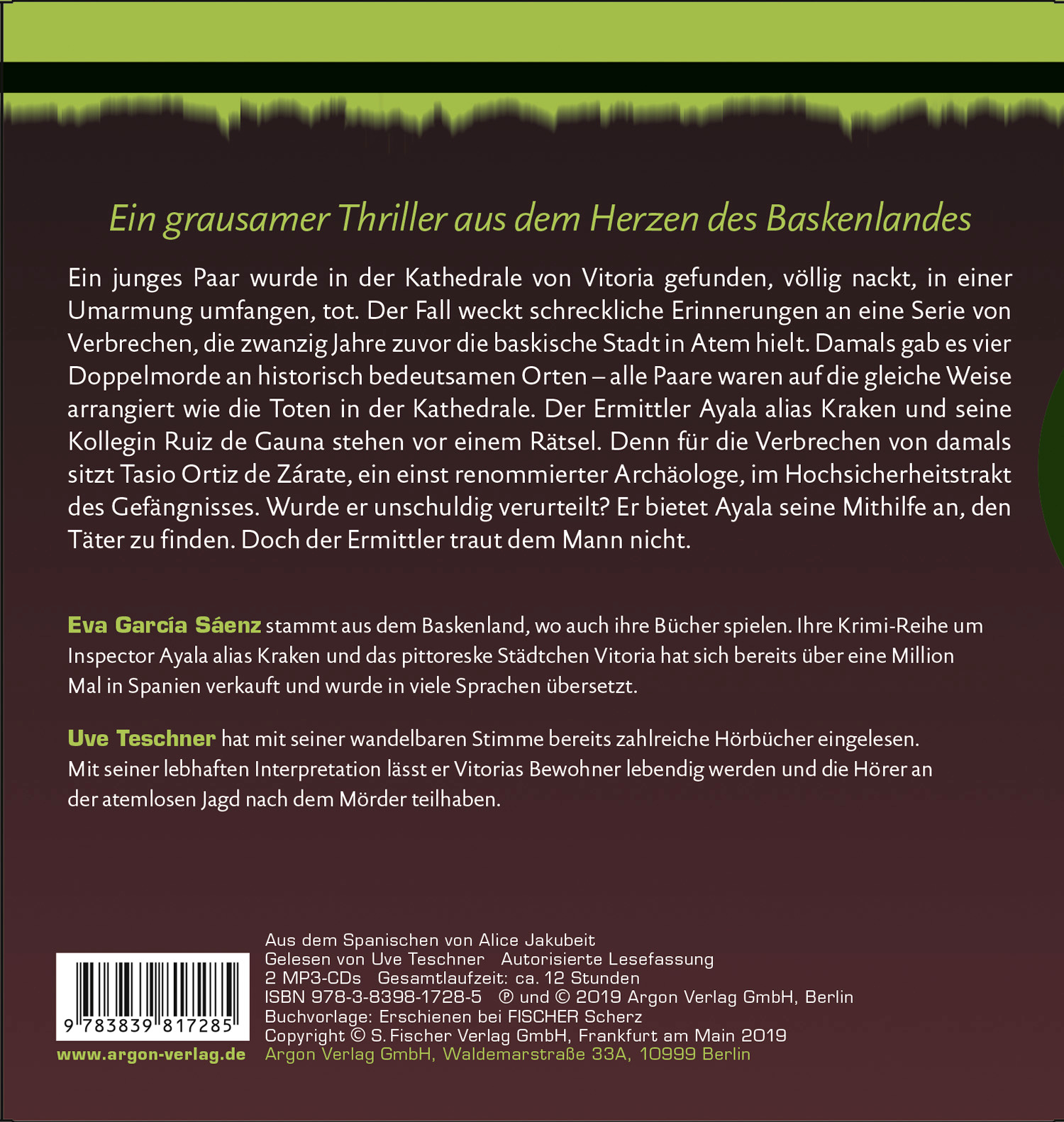 Uve Teschner hat mit seiner wandelbaren Stimme bereits zahlreiche Hörbücher eingelesen. Mit seiner lebhaften Interpretation lässt er Vitorias Bewohner lebendig werden und den Zuschauer an der atemlosen Jagd nach dem Mörder teilhaben.