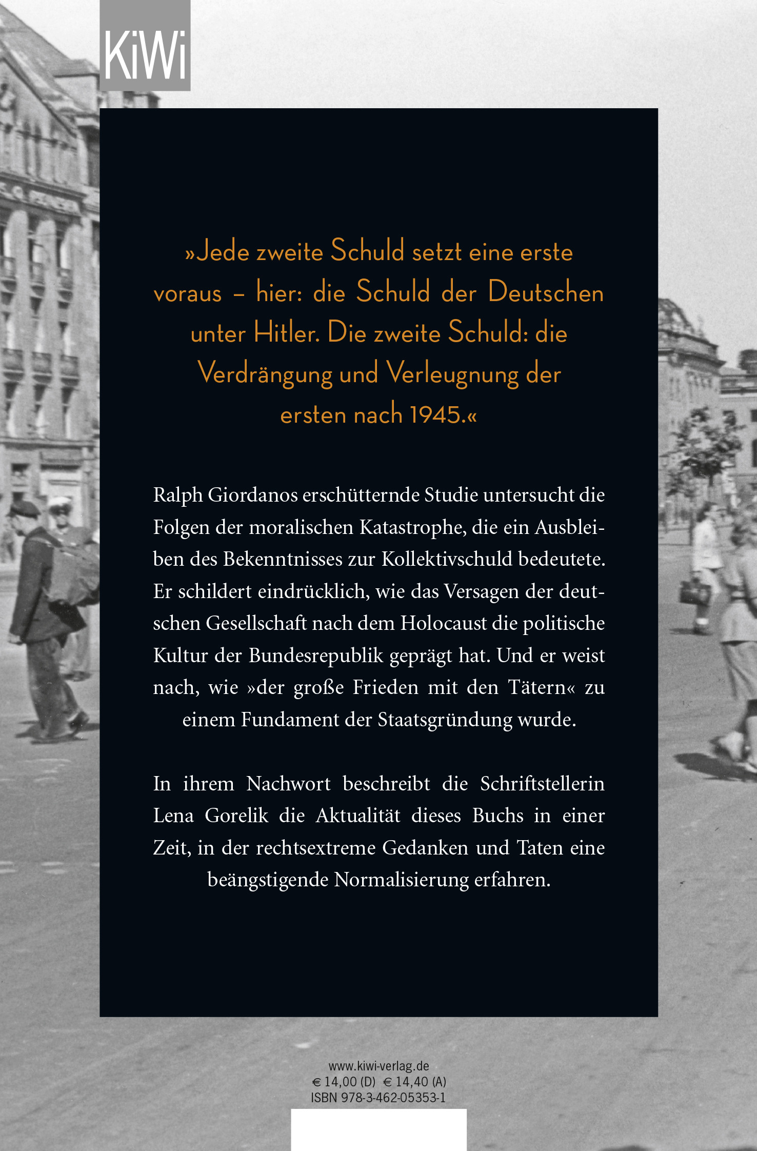 Ralph Giordanos erschütternde Studie untersucht die Folgen der moralischen Katastrophe, die ein Ausbleiben des Bekenntnisses zur Kollektivschuld bedeutete. Er schildert eindrücklich, wie das Versagen der deutschen Gesellschaft nach dem Holocaust die politische Kultur der Bundesrepublik geprägt hat. Und er weist nach, wie »der große Frieden mit den Tätern« zu einem Fundament der Staatsgründung wurde.