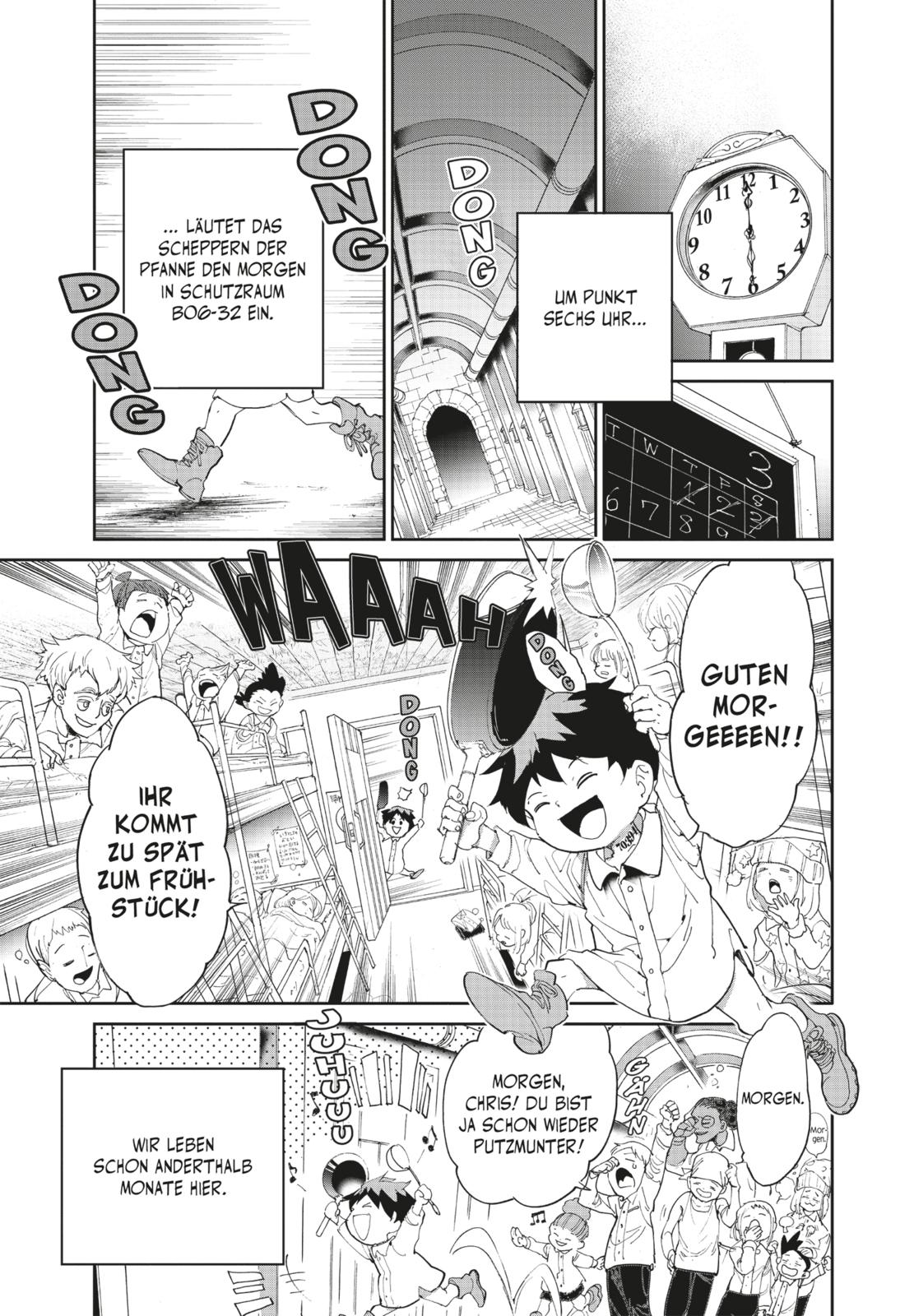 Die Frau, die sie wie ihre Mutter lieben, ist nicht ihre wirkliche Mutter, und die Kinder, mit denen sie zusammenleben, sind nicht ihre Geschwister. Denn Emma, Norman und Ray wachsen wohlbehütet in einem kleinen Waisenhaus auf. Doch eines Tages endet ihr glücklicher Alltag abrupt, als sie die schockierende Wahrheit über ihr Zuhause erfahren. Welches Schicksal wird die Kinder erwarten...?!