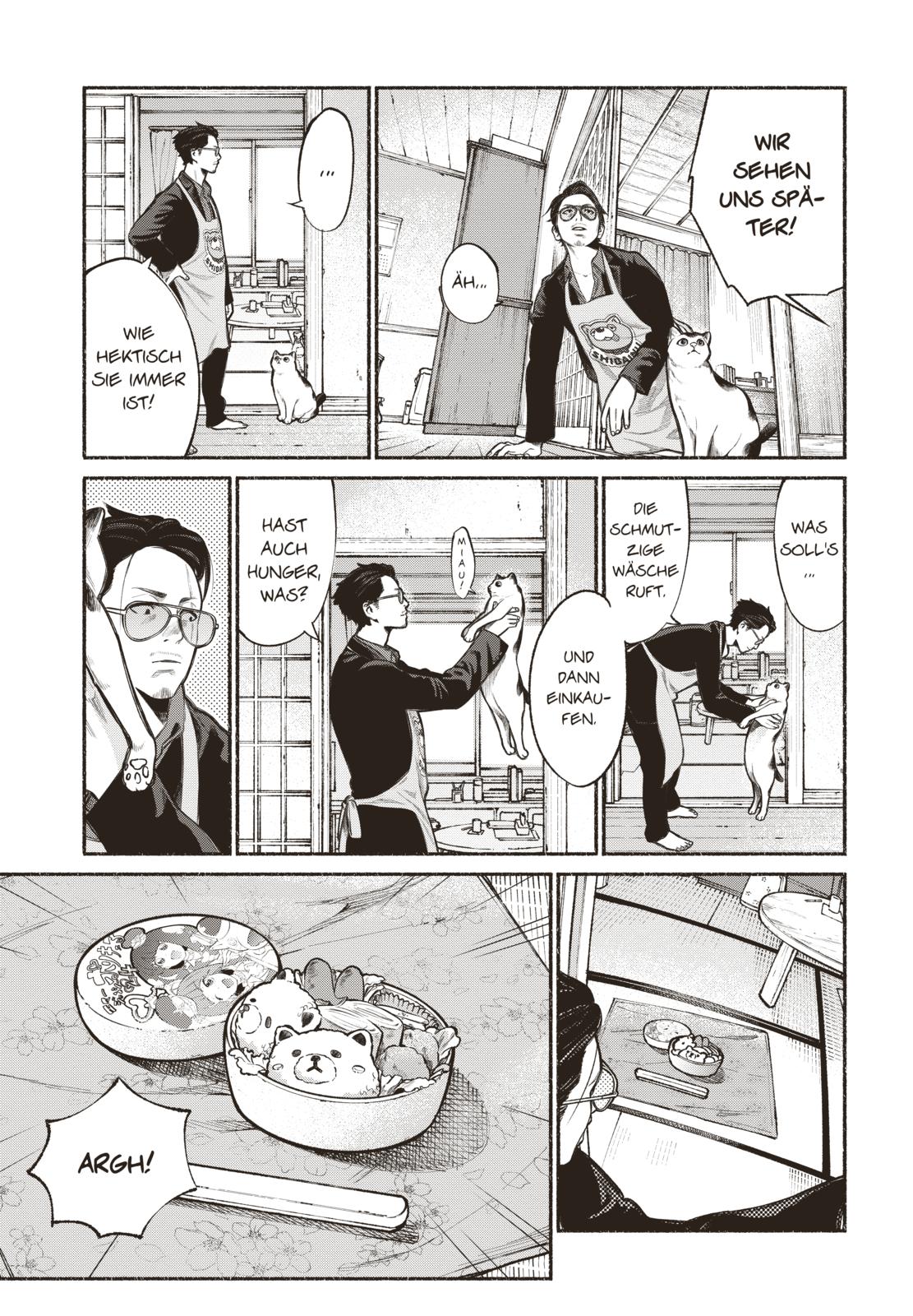 Doch das gehört ab sofort der Vergangenheit an: Tatsu beschließt, sein Leben zu ändern. Ab sofort sind Wertmarken, Töpfe und Staubwedel seine Waffen. Richtig gelesen, Tastu beschließt, Hausmann zu werden. So sehr er sich auch bemüht, sein Ruf ist ihm immer einen Schritt voraus... nur seine Frau lässt sich davon überhaupt nicht beeindrucken.