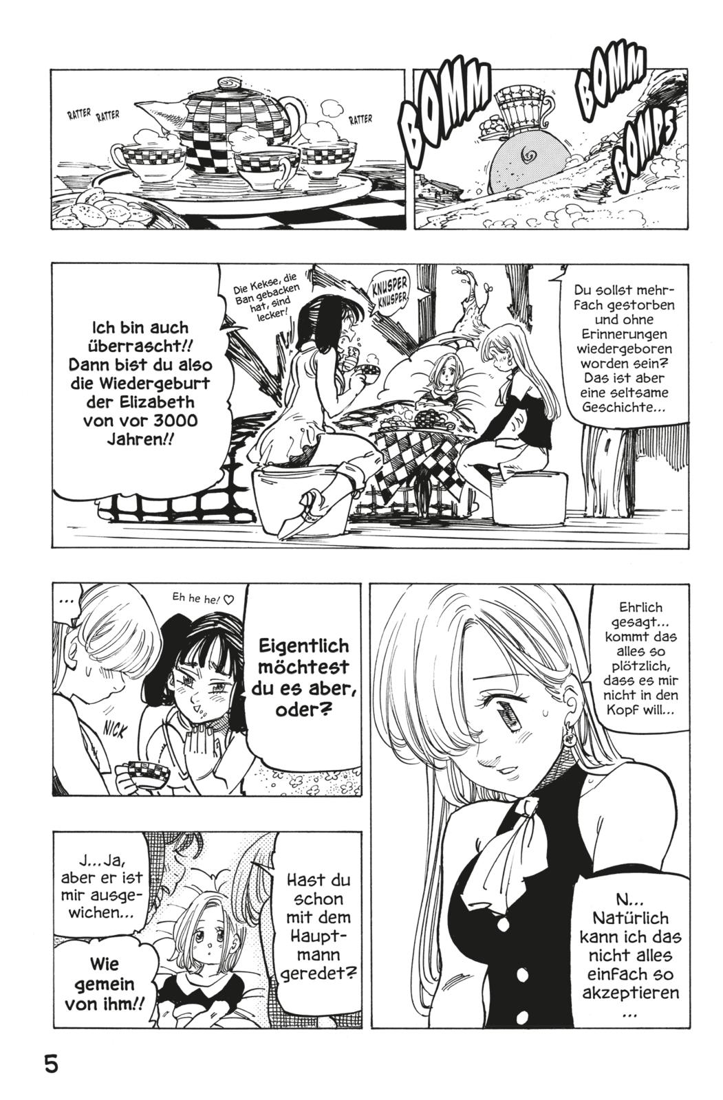 Immer wieder wird sie wiedergeboren, und jedes Mal verbindet die beiden eine unzertrennbare Liebe. Als Zeldris Elizabeth die Wahrheit eröffnet, nimmt sie ihr Los freudig an... Doch mit dem Zurückkehren der Erinnerungen nähert sich auch ihr auf ewig vorherbestimmter Tod. Kann die herannahende Vernichtung noch abgewendet werden? Und wie geht es weiter im epischen Kampf der »Sins«, der keine Aussicht auf Erlösung hat?!
