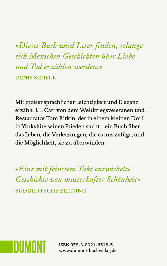 »J. L. Carr [...] schenkt uns gleichzeitig eine traumschöne Momentaufnahme englischen Landlebens jenseits von Downton-Abbey-Putzigkeit.«