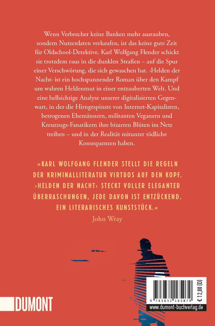 »Das Beobachten der Beobachter hat [Flender] in seinem Meta-Kriminalroman zum Prinzip gemacht. Ein großes Pop-Universum [wird] aufgetan.« Jan Wiele, FAZ »Mit Liebe zum Detail verwickelt Karl Wolfgang Flender Bryan und Colleen in ein popkulturelles Netzwerk zwischen postmodernen Roman, Film noir und Fernsehkrimi.« Sofia Glasl, SÜDDEUTSCHE ZEITUNG »Flenders stilsicherer Roman ist Liebeserklärung, Hommage, Satire, Dekonstruktion und Update zugleich.« Christian Endres, TIP BERLIN »Karl Wolfgang Flender ist erneut eine Fusion gelungen, die großartigen Kriminalroman, lustiger Hommage an große Detektive-Helden und scharfzüngiges Gesellschaftsportrait miteinander verbindet.« Andreas Gstettner-Brugger, ORF FM 4 »Ein spannender Roman über den Heldenmut in einer entzauberten Welt.« Reinhold Grosselohmann, SOESTER ANZEIGER »Eine ganz wunderbare Beobachtung der Gesellschaft. [...] humorvoll, temporeich.« Miriam Semrau, HR 2 KULTUR »Eine raffinierte Krimiparodie [...] Ich gebe fünf von fünf Blaulichtern!« Stefan Sprang, HR 1 »Karl Wolfgang Flender zeigt 'Helden der Nacht' auch im tristen Alltag bei kläglicher Routine.« Irmtraud Gutschke, NEUES DEUTSCHLAND »Pop-Literatur vom Feinsten!« Hanspeter Reiter, GABAL »literarisches Erzählkino vom Feinsten« Jens-Uwe Sommerschuh, SÄCHSISCHE ZEITUNG »Flender hat einen amüsanten Abgesang auf die alten Helden der Nacht zwischen Späti und Co-Living-Space, Baumarkt und Glitzerpalästen geschrieben.« Martin Halter, BADISCHE ZEITUNG »'Helden der Nacht' ist ein Meta-Krimi, ein Genre-Stück übers Genre. [...] Anders gesagt: Flender beweist, dass ein großer Spaß nicht blöd sein muss.« Harald Ries, WESTFALENPOST »Eine Liebeserklärung an Detektivgeschichten [...] Unbedingt Lesen!« Claudius Niessen, DETEKTOR.FM »Ein durch und durch aberwitziger, dabei wirklich spannender Krimi, der mit scharfem Blick unsere Gesellschaft beobachtet. Satire, Verneigung vor dem klassischen Genre und actionreiche Verschwörungsgeschichte in einem!« Jörn Pinnow, LITERATURKURIER »Das Spiel mit Bewusstseinsebenen, Zeitsträngen und Figurenperspektiven bringt eine ungeheure Dynamik.« Kerstin Panhorst, WESTFALEN-BLATT »Das Beobachten der Beobachter hat [Flender] in seinem Meta-Kriminalroman zum Prinzip gemacht. Ein großes Pop-Universum [wird] aufgetan.« Jan Wiele, FAZ »Mit Liebe zum Detail verwickelt Karl Wolfgang Flender Bryan und Colleen in ein popkulturelles Netzwerk zwischen postmodernen Roman, Film noir und Fernsehkrimi.« Sofia Glasl, SÜDDEUTSCHE ZEITUNG »Flenders stilsicherer Roman ist Liebeserklärung, Hommage, Satire, Dekonstruktion und Update zugleich.« Christian Endres, TIP BERLIN »Karl Wolfgang Flender ist erneut eine Fusion gelungen, die großartigen Kriminalroman, lustiger Hommage an große Detektive-Helden und scharfzüngiges Gesellschaftsportrait miteinander verbindet.« Andreas Gstettner-Brugger, ORF RADIO FM 4 »Eine ganz wunderbare Beobachtung der Gesellschaft. [...] humorvoll, temporeich.« Miriam Semrau, HR 2 KULTUR »Eine raffinierte Krimiparodie [...] Ich gebe fünf von fünf Blaulichtern!« Stefan Sprang, HR 1 »Karl Wolfgang Flender zeigt 'Helden der Nacht' auch im tristen Alltag bei kläglicher Routine.« Irmtraud Gutschke, NEUES DEUTSCHLAND »Pop-Literatur vom Feinsten!« Hanspeter Reiter, GABAL »Karl Wolfgang Flender gelingt eine köstliche Satire auf den herkömmlichen hard-boiled Detektivroman mit vielen Querverbindungen und Anspielungen.« Kurt Haber, BIBLIOTHEKSNACHRICHTEN »literarisches Erzählkino vom Feinsten« Jens-Uwe Sommerschuh, SÄCHSISCHE ZEITUNG »Flender hat einen amüsanten Abgesang auf die alten Helden der Nacht zwischen Späti und Co-Living-Space, Baumarkt und Glitzerpalästen geschrieben.« Martin Halter, BADISCHE ZEITUNG »'Helden der Nacht' ist ein Meta-Krimi, ein Genre-Stück übers Genre. [...] Anders gesagt: Flender beweist, dass ein großer Spaß nicht blöd sein muss.« Harald Ries, WESTFALENPOST »Eine Liebeserklärung an Detektivgeschichten [...] Unbedingt Lesen!« Claudius Niessen, DETEKTOR.FM »Ein durch und durch aberwitziger, dabei wirklich spannender Krimi, der mit scharfem Blick unsere Gesellschaft beobachtet. Satire, Verneigung vor dem klassischen Genre und actionreiche Verschwörungsgeschichte in einem!« Jörn Pinnow, LITERATURKURIER »Das Spiel mit Bewusstseinsebenen, Zeitsträngen und Figurenperspektiven bringt eine ungeheure Dynamik.« Kerstin Panhorst, WESTFALEN-BLATT »Sein unterhaltsamer Roman 'Helden der Nacht' ist ein satirischer Abgesang auf das hochgeschätzte Genre.« Dieter Wunderlich, DIETERWUNDERLICH.DE