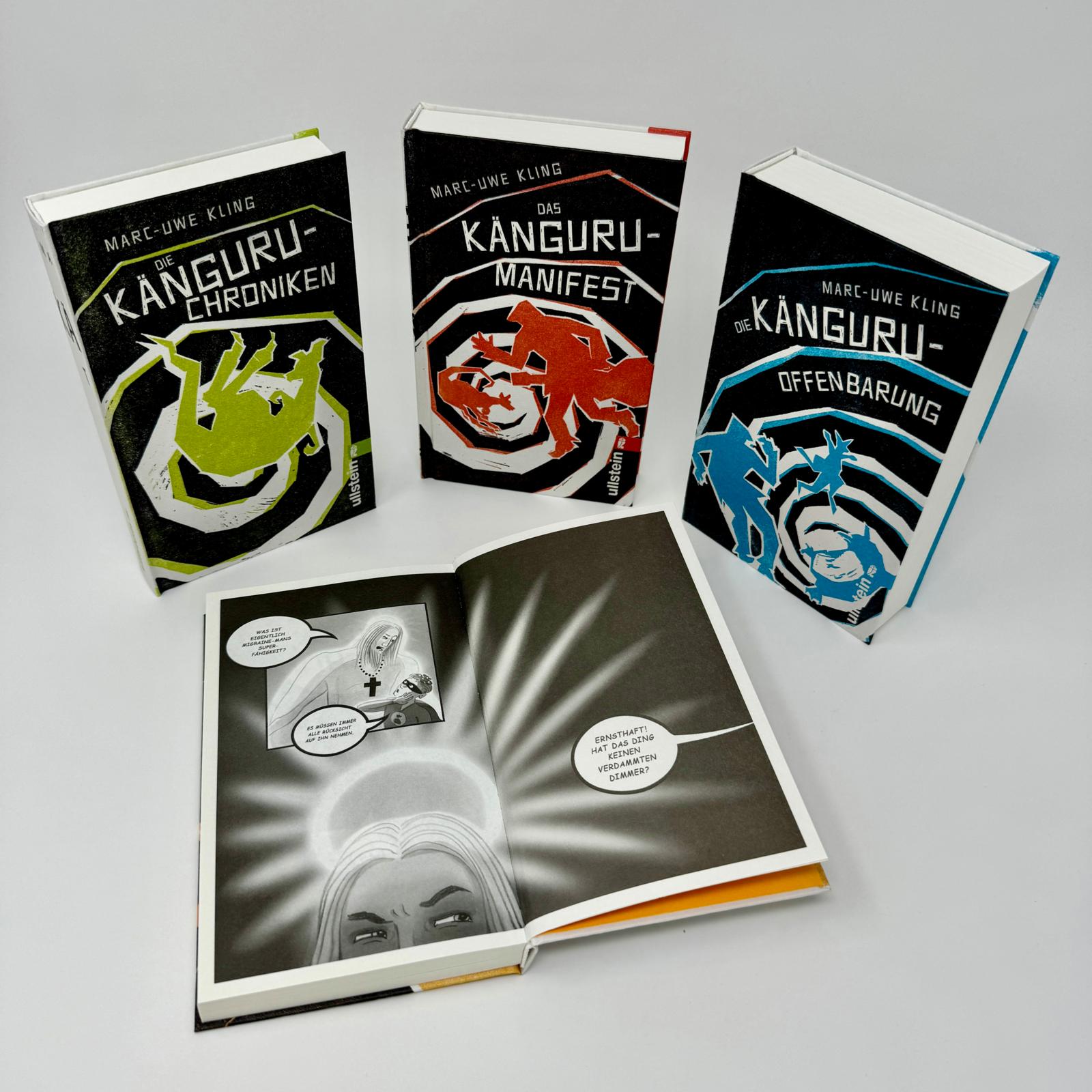 In den vier Bänden erleben das Känguru und sein Kleinkünstler-Mitbewohner jede Menge absurde Abenteuer und nehmen dabei die Skurrilitäten unserer Gesellschaft humorvoll aufs Korn. Mit pointiertem Witz und intelligent-bissiger Satire hinterfragt das ungleiche Duo scheinbar selbstverständliche Dinge und entlarvt so manches Vorurteil. Eine herrlich unterhaltsame Reihe voll schräger Ideen und philosophischem Tiefgang.