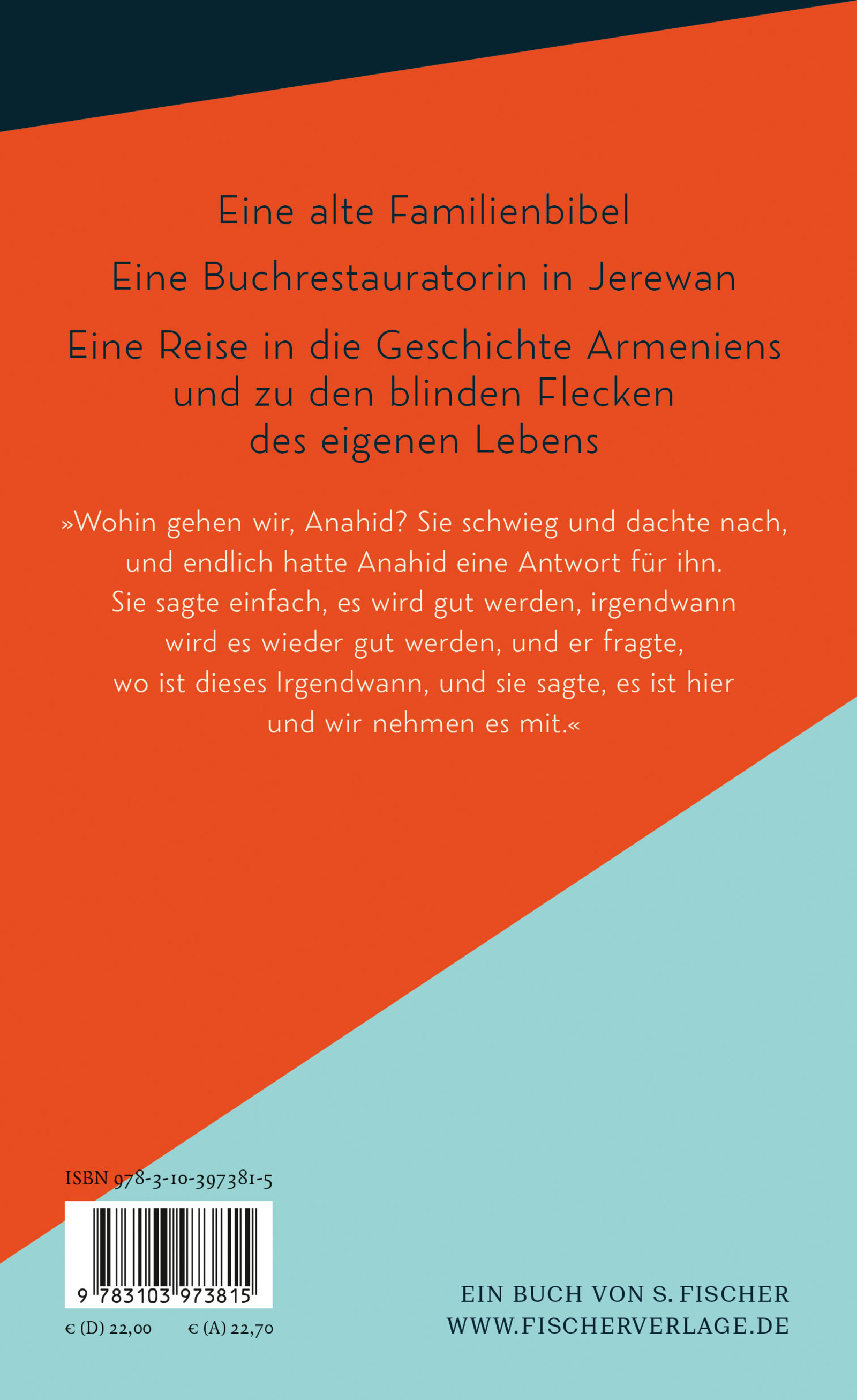 | Schlagworte | Anspruchsvolle Literatur • Armenien • Berlin • Buchrestauration • Deutscher Buchpreis • Exotik • Familiengeschichte • Familiensuche • Genozid • Heilevangeliar • Istanbul • Jerewan • Liebe • Longlist • Longlist Deutscher Buchpreis • Magie • Moskau • Politik • Reisen • Traumata • Türkei • Türkei |
