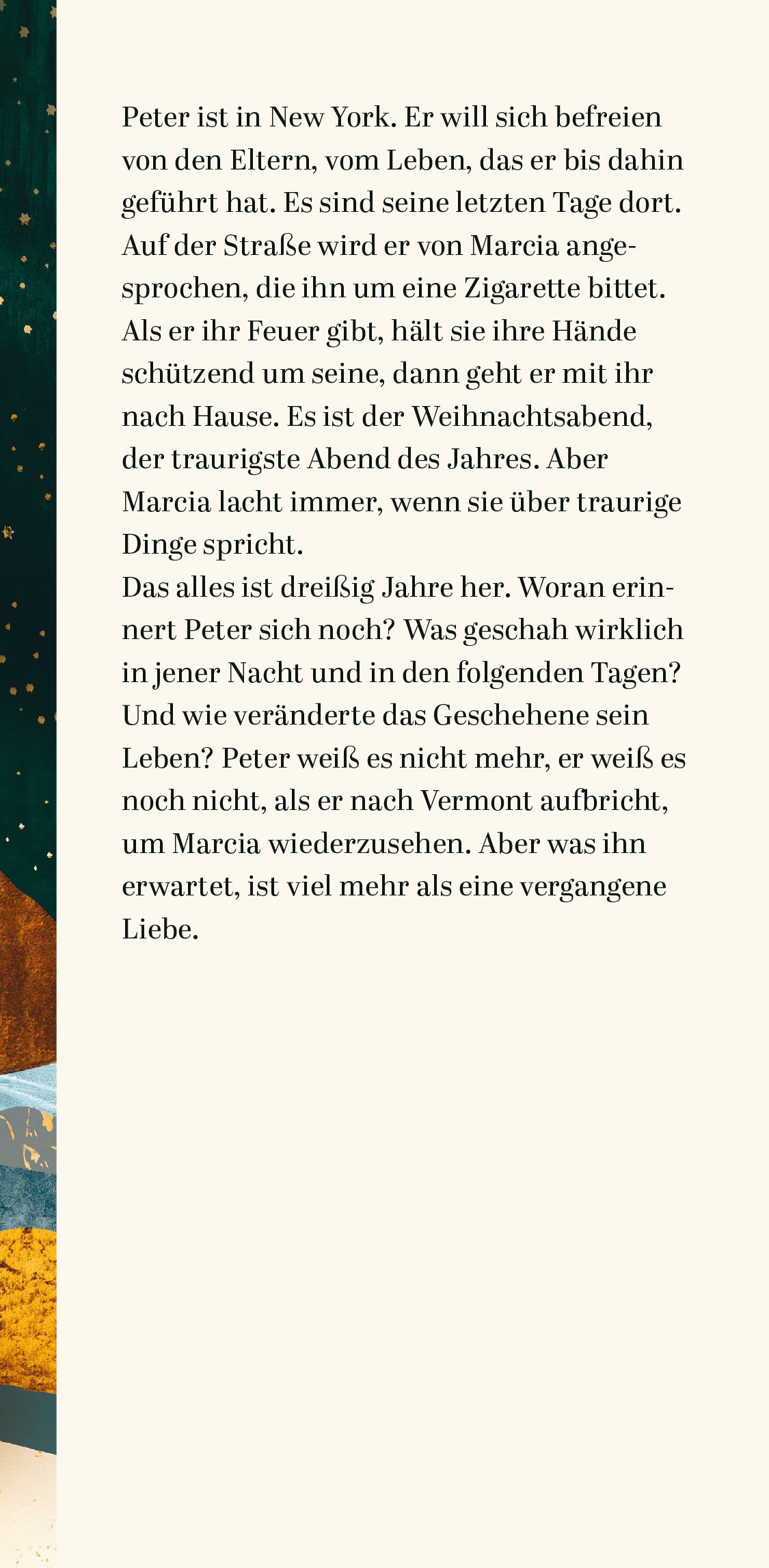 Peter Stamm erzählt aus dieser Mitte der Existenz heraus, seine Figuren sind zum Greifen nah. Wer seine Bücher liest, kann zu sich selbst finden. Und es ist plötzlich Weihnachten.