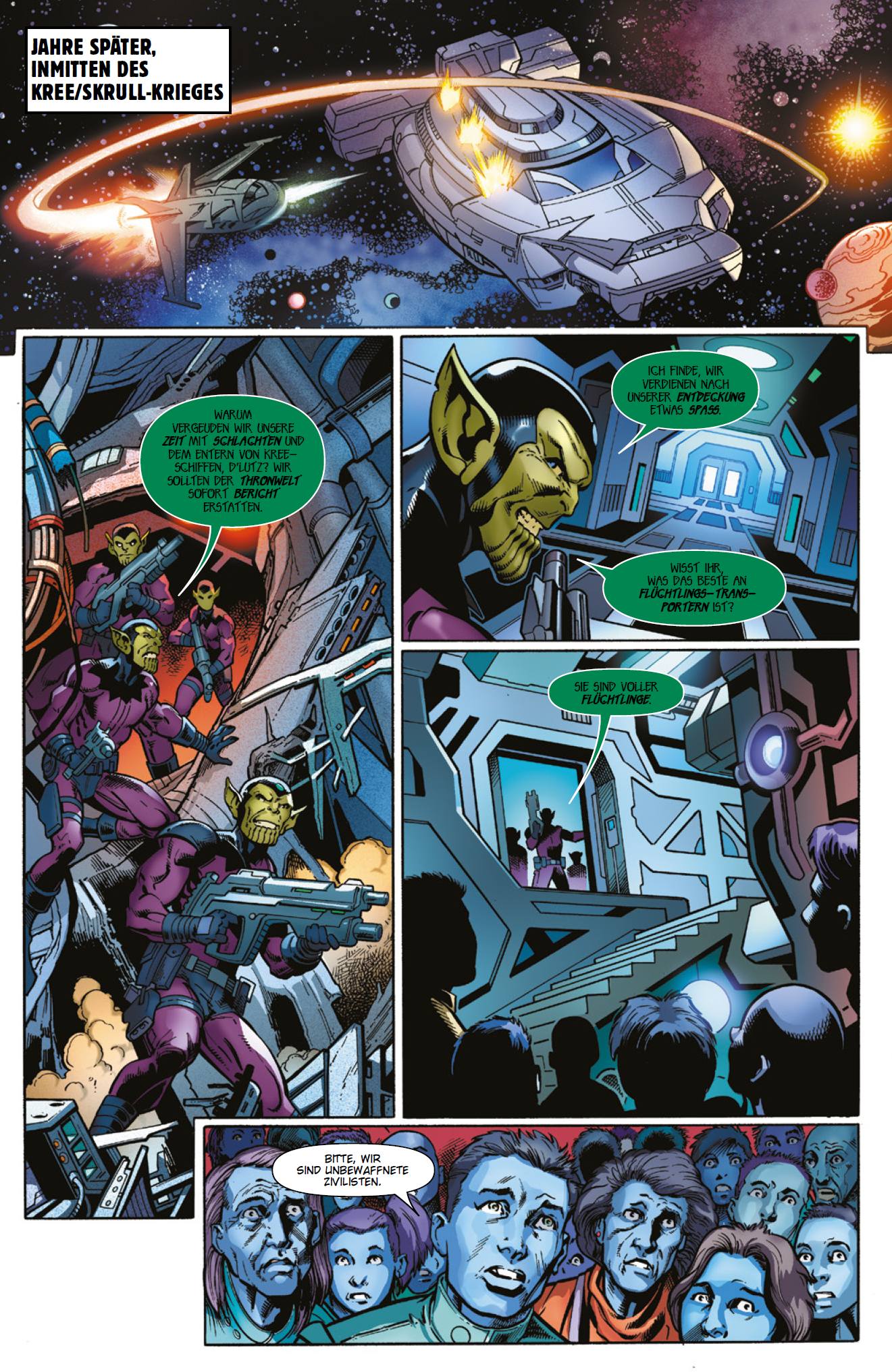 VORWORT von Christian Endres Vor vielen Jahren gelangte ein Alien aus dem Volk der Klyntar aus dem Weltall auf die Erde. Der Symbiont erschien Spider-Man Peter Parker wie ein superintelligentes, extrem praktisches und anpassungsfähiges schwarzes Kostüm, war in Wahrheit allerdings eine eigenständige, parasitäre Lebensform und wollte immer mehr Macht über seinen Wirt. Spidey und der Klyntar trennten sich nach einiger Zeit im Bösen voneinander, danach verband das Alien sich mit dem hasserfüllten, rachsüchtigen Reporter Eddie Brock. Gemeinsam wurden die beiden zum brutalen netzschwingenden Superschurken Venom, einem von Spider-Mans gefährlichsten und gemeinsten Feinden. Später jedoch wandelten sie sich zum Antihelden und tödlichen Beschützer. Über die Jahre dienten noch andere als Wirt des psychotischen und daher oftmals aggressiven Klyntar: der Gangstersohn Angelo Fortunato, der Superschurke Mac „Scorpion“ Gargan und der ruchlose Kriegsveteran Lee Price nutzten den Symbionten allesamt für kriminelle Taten – einzig und allein Flash Thompson zeigte dem Alien als Agent Venom und als Guardian of the Galaxy, was es bedeutet, ein Held zu sein. In den VENOM-Comics von Autor Mike Costa, Mark Bagley und anderen verband sich Brock zuletzt wieder mit „seinem“ Symbionten. Zudem hatte er mit Liz Allan zu tun, der großen Liebe von Peter Parkers Freund Harry Osborn bzw. Harry Lyman, die mittlerweile als skrupellose Chefin die Hightech-Firma Alchemax leitet. Der Alchemax-Wissenschaftler Dr. Steven half mit einem speziellen Serum Eddie dabei, den Symbionten in einer besonders üblen, manischen Phase zu kontrollieren. In dieser bekam der Klyntar sogar Nachwuchs. Sein junger Ableger wird mit Eddies Segen derzeit bei Alchemax versorgt, bis er bereit ist, eine Symbiose einzugehen. In diesem brandneuen Einzelband stellt sich nun heraus, dass die zuletzt mehrfach erweiterte Venom-Mythologie bis in den langen, erbittert geführten intergalaktischen Krieg der gnadenlosen Kree und der gestaltwandlerischen Skrulls zurückreicht …