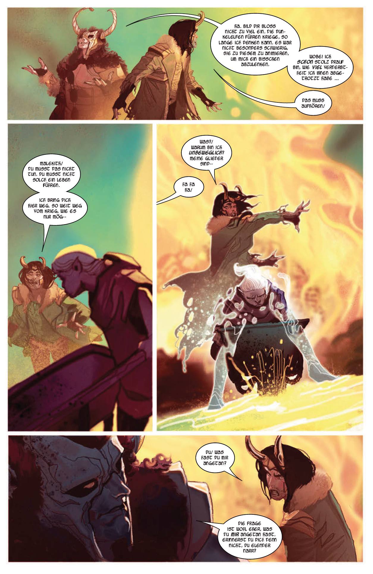 VORWORT von Thomas Witzler Jahre lag Malekith der Verfluchte in Ketten, umzingelt von Schlangen, draußen in Niffelheim, den eisigen Gefilden von Hel. Doch es kam der Tag, an dem sich der Dunkelelf aus der Grube des Leids befreite und der Rest der Zehn Welten stürzte hinab. Ohne Zögern machte er sich ans Werk, seine Heimat Svartalfheim zu erobern. Malekith erschlug jeden Rivalen, der seinen Weg kreuzte und ernannte sich selbst zum König. Schon in seiner Kindheit waren Tod und Schmerz auf dem Schlachtfeld ständige Begleiter. Wo andere versuchen, Krieg zu meiden, sucht er, Krieg zu führen. Grausam und ohne Unterlass. Es ist die alleinige Triebfeder, die einzige Freude, die er kennt. Und so machte Malekith einfach weiter, nachdem er Svartalfheim in die Knie gezwungen hatte. Nun wollte er alles … und er wollte jede Welt fallen sehen. Sein radikaler Expansionsdrang sicherte ihm mächtige Verbündete. Um die Frostriesen auf seine Seite zu ziehen, erweckte er ihren längst verstorbenen König Laufey, Lokis Vater, wieder zum Leben. Muspelheims feurige Feuergoblins – angeführt von Surturs Tochter Sindr, Uliks Trolle aus Nornheim und die kämpferischen Engel von Heven. Alle folgten dem Ruf des finsteren Kriegsherrn. In Asgard fand er in Enchantress und dem Minotaur Dario Agger, Kopf des Energiekonzerns Roxxon, wertvolle Helfer. Zuvor hatte sich Thor unwürdig erwiesen und seine Rolle als Donnergott samt Hammer an seine frühere Geliebte Jane Foster verloren. Keiner von beiden konnte Asgardias Zerstörung verhindern. Jetzt ist Thor zurück. Obwohl seines Hammers Mjolnir nach wie vor nicht würdig, ist er wieder der Gott des Donners. Nachdem Malekith und seine Truppen neun der Zehn Welten in Schutt und Asche gelegt haben, sind sie endlich auch in Midgard angekommen. Asgards Götter und die Helden der Erde stehen vereint, um die Invasoren zu bekämpfen. Der reuige Loki wehrte einen Angriff auf seine Adoptivmutter Freya ab. Und so nahm der Krieg für den Gott des Unheils ein jähes Ende, als ihn Laufey ergriff und verschlang …
