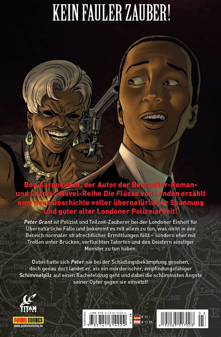 KEIN FAULER ZAUBER! Ben Aaronovitch, der Autor der Bestseller-Romanund Graphic-Novel-Reihe Die Flüsse von London erzählt eine neue Geschichte voller übernatürlicher Spannung und guter alter Londoner Polizeiarbeit! Peter Grant ist Polizist und Teilzeit-Zauberer bei der Londoner Einheit für Übernatürliche Fälle und bekommt es mit allem zu tun, was nicht in den Bereich normaler strafrechtlicher Ermittlungen fällt - sondern eher mit Trollen unter Brücken, verfluchten Tatorten und den Geistern einstiger Monster zu tun haben. Dabei hatte sich Peter nie bei der Schädlingsbekämpfung gesehen, doch genau dort landet er, als ein mörderischer, empfindungsfähiger Schimmelpilz auf einen Rachefeldzug geht und dabei die schlimmsten Ängste seiner Opfer gegen sie einsetzt!