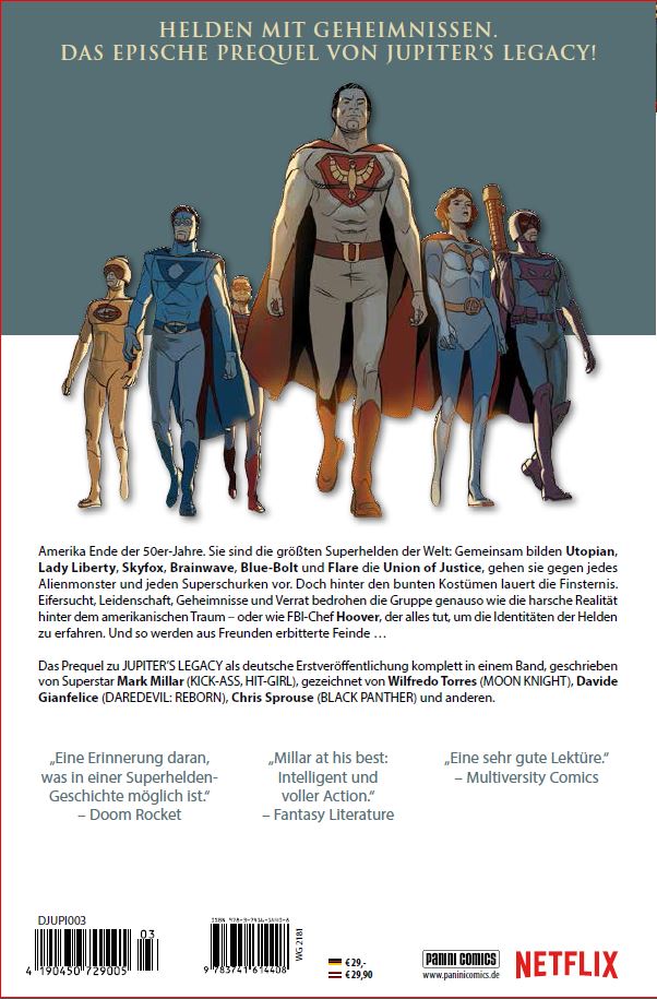 | Schlagworte | Blue-Bolt • brainwave • Comic • Comics • Flare • H19 • H2019 • Herbst19 • Herbst2019 • Hoover • Jupiter's Circle • Jupiter’s Circle • Jupiter's Legacy • Lady Liberty • Mark Millar • Netflix • Netflix Serie • Paninicomics • Panini Comics • Prequel Jupiter's Legacy • Skyfox • Superhelden • Superheldngeschichte • Union of Justice • utopian • Vorgeschichte Jupiter's Legacy |