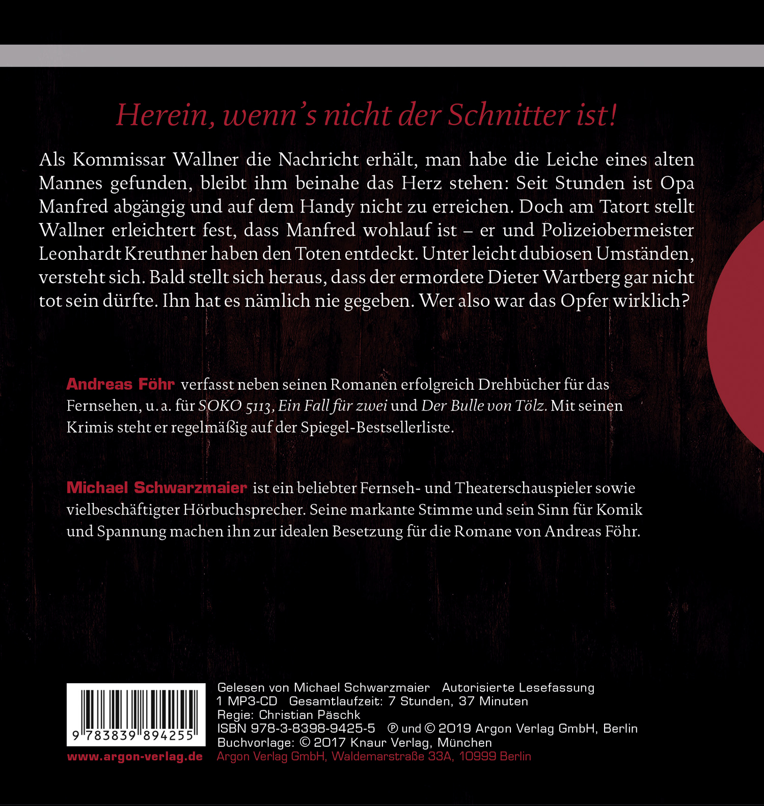 Michael Schwarzmaier ist ein beliebter Fernseh- und Theaterschauspieler und ein vielbeschäftigter Hörbuchsprecher. Seine markante Stimme und sein Sinn für Komik und Spannung machen ihn zur idealen Besetzung für die Romane von Andreas Föhr.