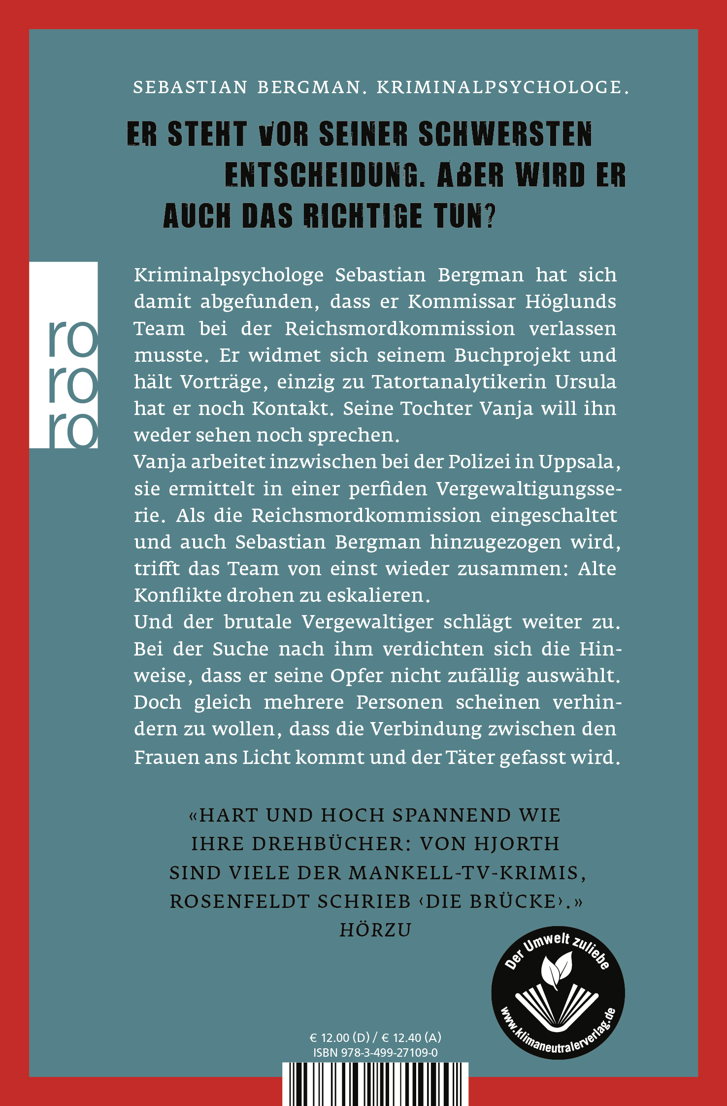 Vanja arbeitet inzwischen bei der Polizei in Uppsala, sie ermittelt in einer perfiden Vergewaltigungsserie. Als die Reichsmordkommission eingeschaltet und auch Sebastian Bergman hinzugezogen wird, trifft das Team von einst wieder zusammen: Alte Konflikte drohen zu eskalieren.