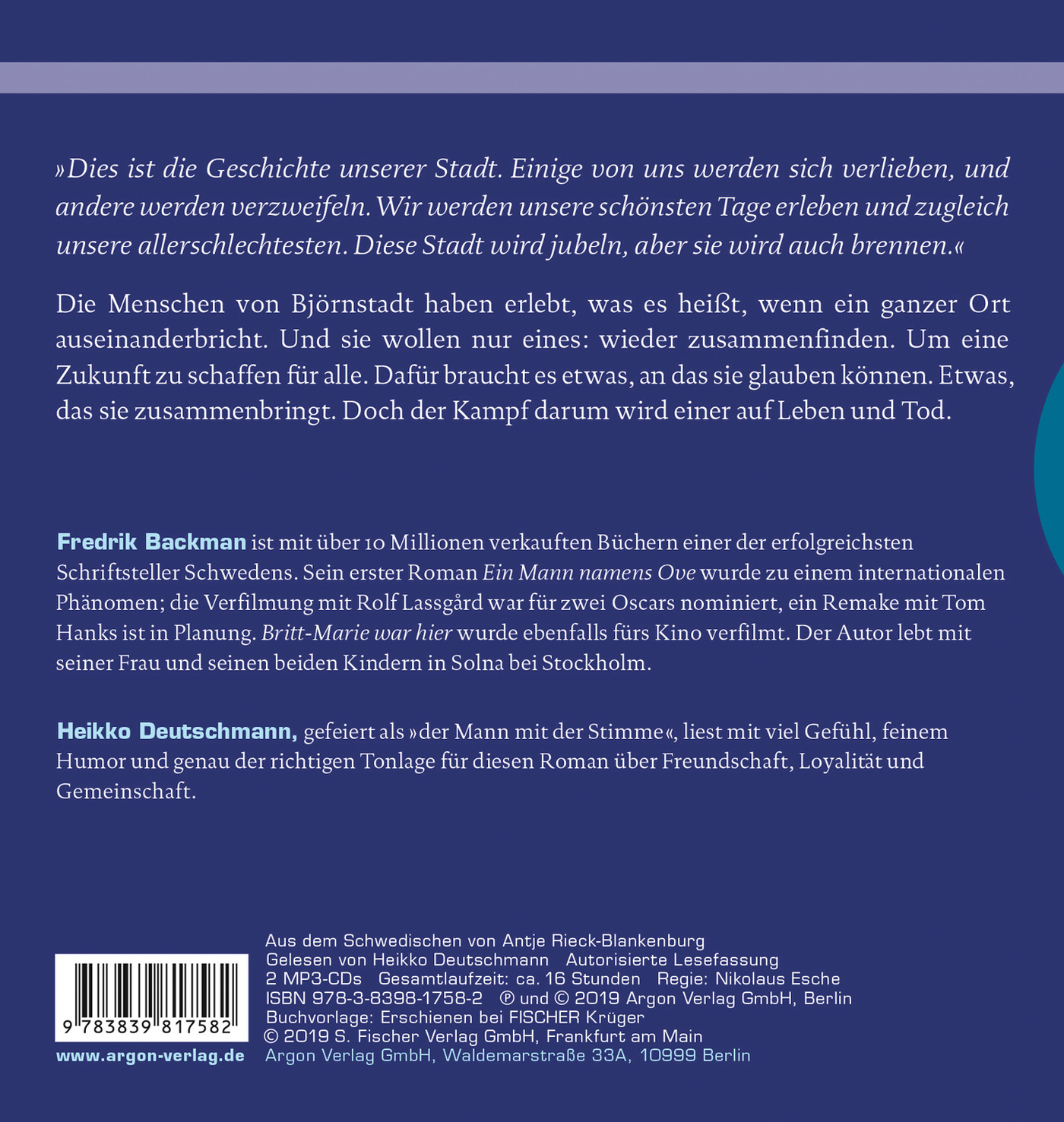 | Reihe/Serie | Argon Hörbuch | Ein Björnstadt-Roman / Beartown |
