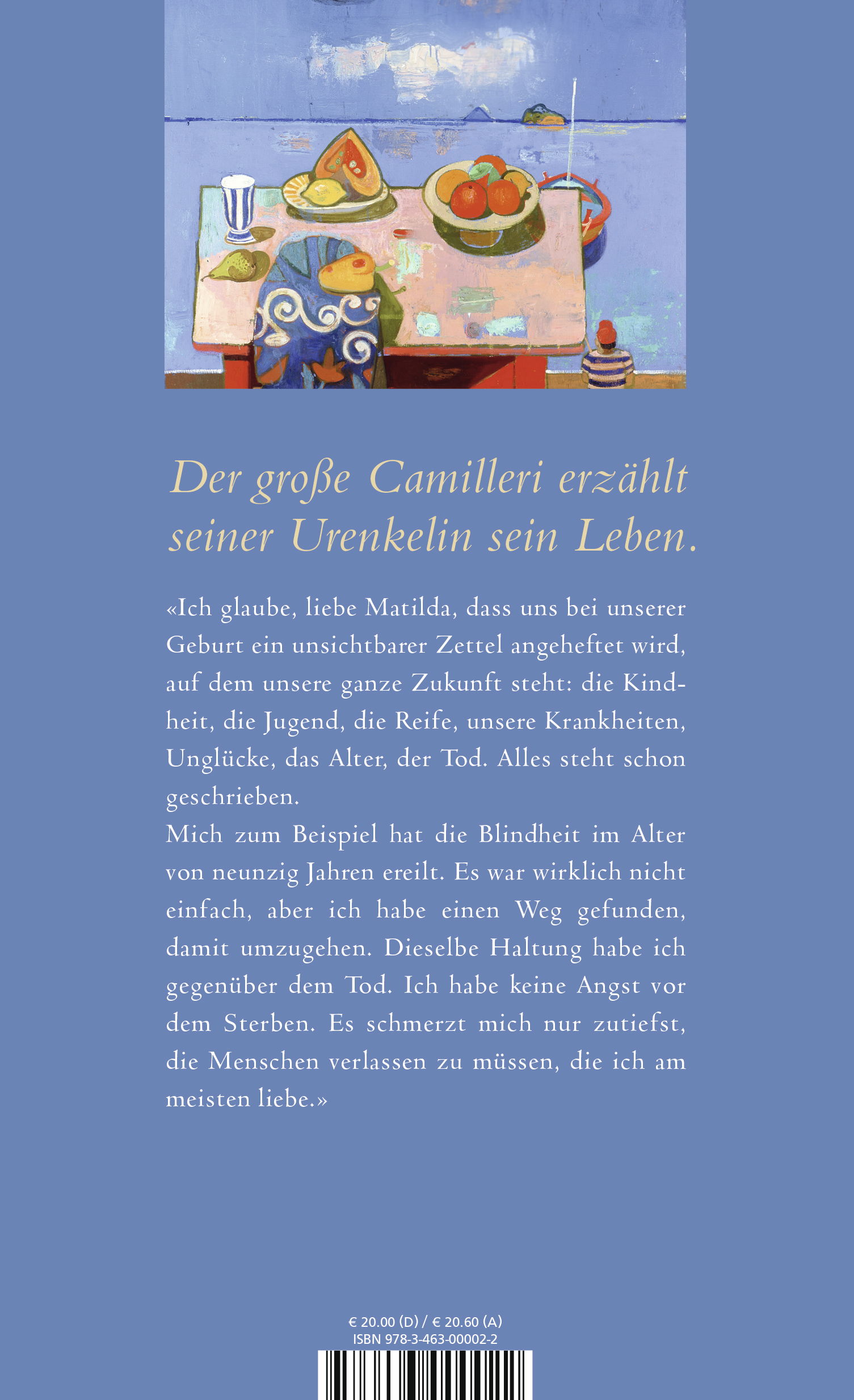 Auf Seiten, die voller Gefühl, Humor und Aufrichtigkeit sind, durchlebt Camilleri noch einmal die Etappen seines Lebens, von Kindheitserinnerungen an die Mussolini-Ära über die bleiernen Jahre und Berlusconi bis hin zu einem Mafia-Blutbad in seiner Heimatstadt. Und er erzählt von der ersten Begegnung mit Rosetta, der Liebe seines Lebens.