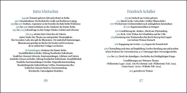 Johann Christoph Friedrich Schiller wird 1759 in Marbach am Neckar geboren. Schon früh wendet sich der promovierte Medizinier der Philosophie und der Literatur zu. Bereits während seines Medizinstudiums schreibt Schiller Gedichte und Theaterstücke. Ruhm erlangt er aber insbesondere durch seine später verfassten Dramen. „Maria Stuart“, „Die Jungfrau von Orléans“ oder „Wilhelm Tell“ gehören bis heute zu den größten und meistgelesenen Klassikern der deutschsprachigen Literatur. Sein Gesamtwerk wird zu den Epochen der Spätaufklärung und der Weimarer Klassik gerechnet. Im Jahr 1805 stirbt Schiller mit nur 45 Jahren an einer Lungenentzündung.
