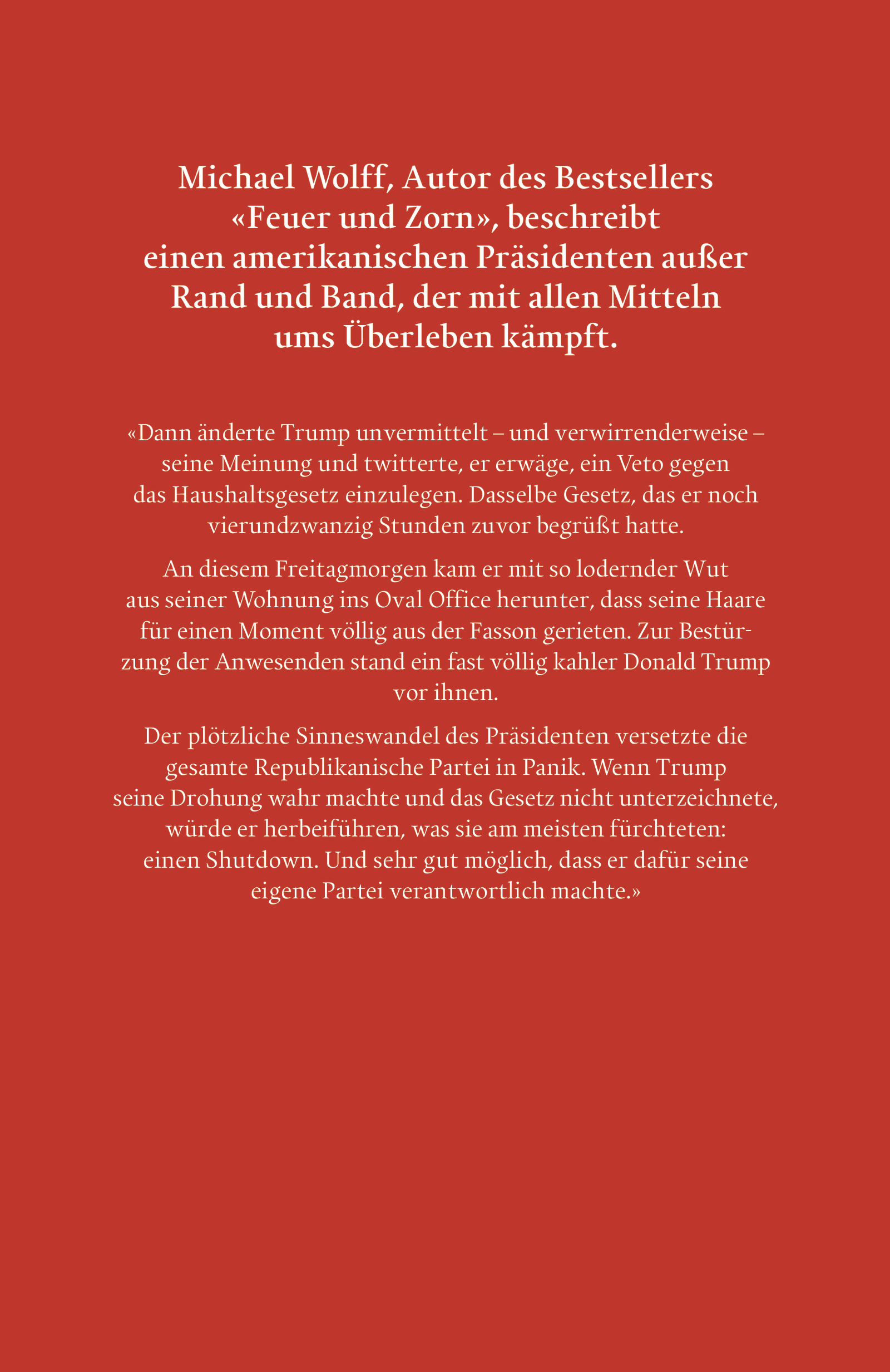 Michael Wolff, 1953 geboren, ist Journalist und Autor. Wolff hat zahlreiche Preise für seine Arbeit erhalten, darunter zweimal den «National Magazine Award». Er schreibt für «Vanity Fair», «New York» und «The Hollywood Reporter» und hat sieben Bücher verfasst, darunter den Bestseller «Feuer und Zorn» über die ersten Monate der Trump-Präsidentschaft und «Unter Beschuss». Michael Wolff lebt mit seiner Familie in New York.