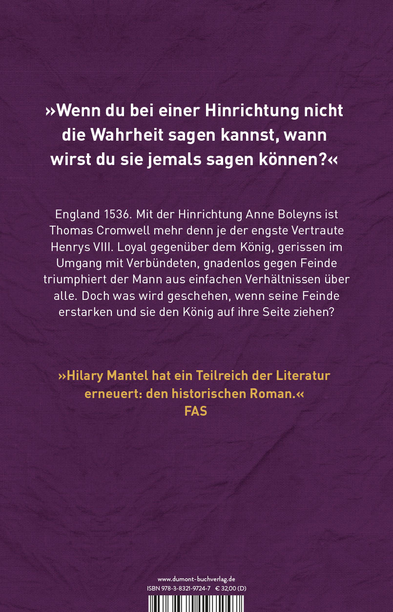 Doch kann eine Nation, kann ein Mensch die Vergangenheit abwerfen wie eine Schlange ihre Haut? Was wird Cromwell tun, wenn sich der König gegen ihn wendet, so wie er sich unweigerlich gegen jeden seiner Vertrauten wendet?