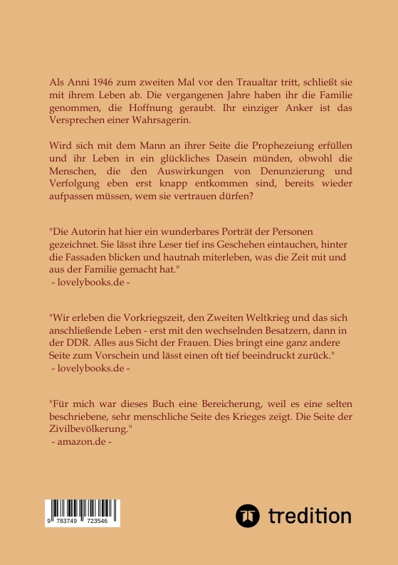 | Schlagworte | Biografie • Biographie • Deutsche Geschichte • DeutscheGeschichte • Die Stärke der Frau • DieStärkederFrau • Erzählendes Sachbuch • ErzählendesSachbuch • Familienroman • Flucht und Vertreibung • FluchtundVertreibung • Frauen im 2.Weltkrieg • Frauenim2.Weltkrieg • Frauen in Ostdeutschland • FraueninOstdeutschland • Frauenschicksale • Generationenkonflikt • Geschichte 2.Weltkrieg • Geschichte2.Weltkrieg • Geschichte DDR • GeschichteDDR • Geschichte Ostdeutschlands • GeschichteOstdeutschlands • Heimatvertriebene • Kriegsenkel • Kriegskinder • Lebensgeschichte • Lebenslauf • Lebensläufe • LPG in Ostdeutschland • LPGinOstdeutschland • Roman |