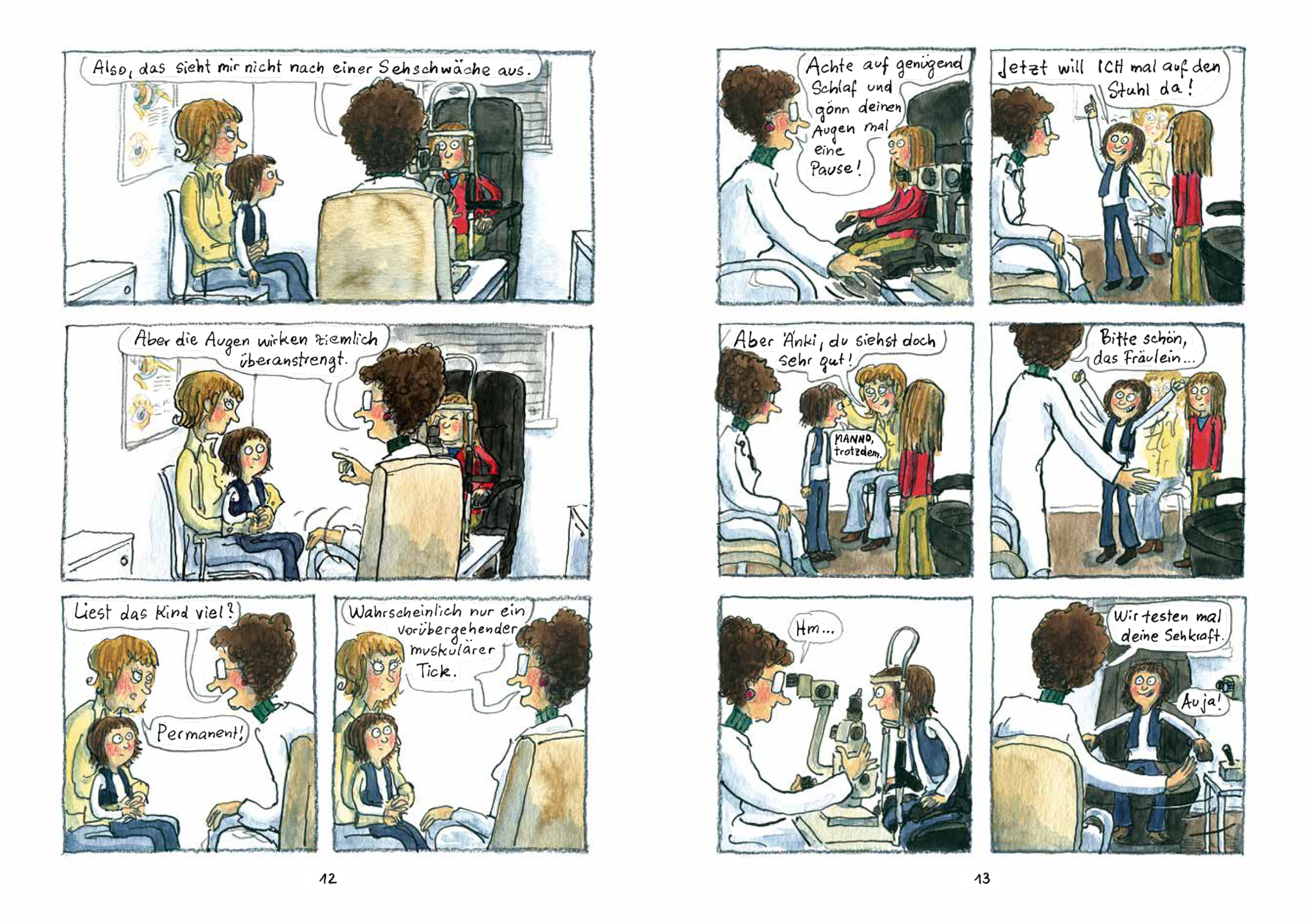 Jetzt erhalten wir eine Ahnung davon, wo dieser Reichtum seinen Ursprung hat. "Manno!" erzählt in herrlichen Comic-Episoden von der Kindheit der kleinen Anke in einer hessischen Kleinstadt. Wir tauchen ein in eine Welt, in der Oma und Opa noch im selben Haus leben und in der man nachmittags auf ziemlich abseitige Ideen kommen kann. Eine Welt, die bei aller Familienintimität nicht ohne Brüche ist. Ein ungemein berührendes Buch für Kinder und Große mit einer immensen Spannbreite von quietschkomisch bis tieftraurig und ganz viel dazwischen.