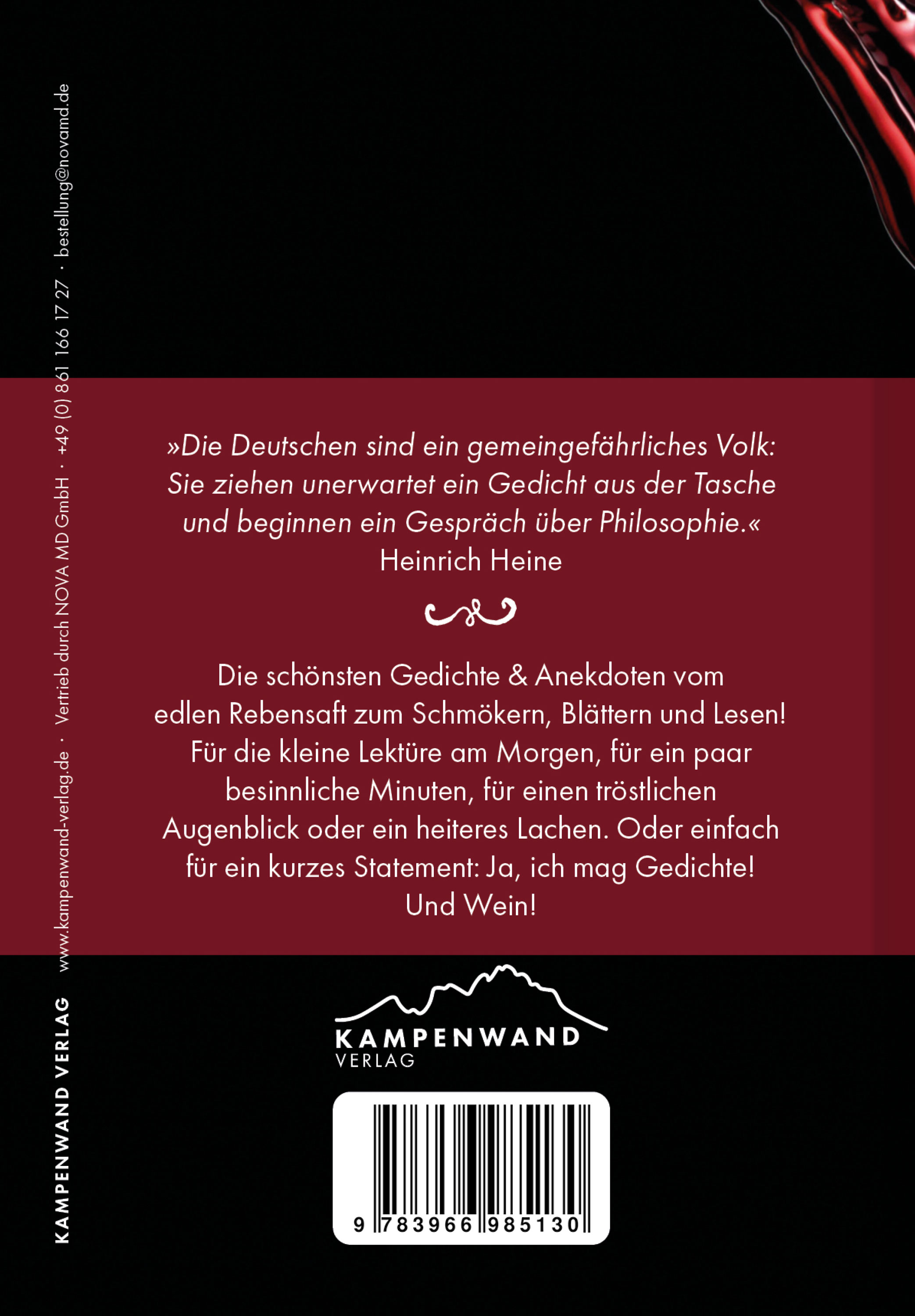 | Schlagworte | Anekdote • Anthologie • Champagner • Foto • Frank • Gedicht • Genuss • Geschenk • Hosentasche • Humor • Kelterkunst • Lyrik • Poesie • Rebensaft • Sammlung • Suchland • Vers • Wein • Weinlese • Witz |