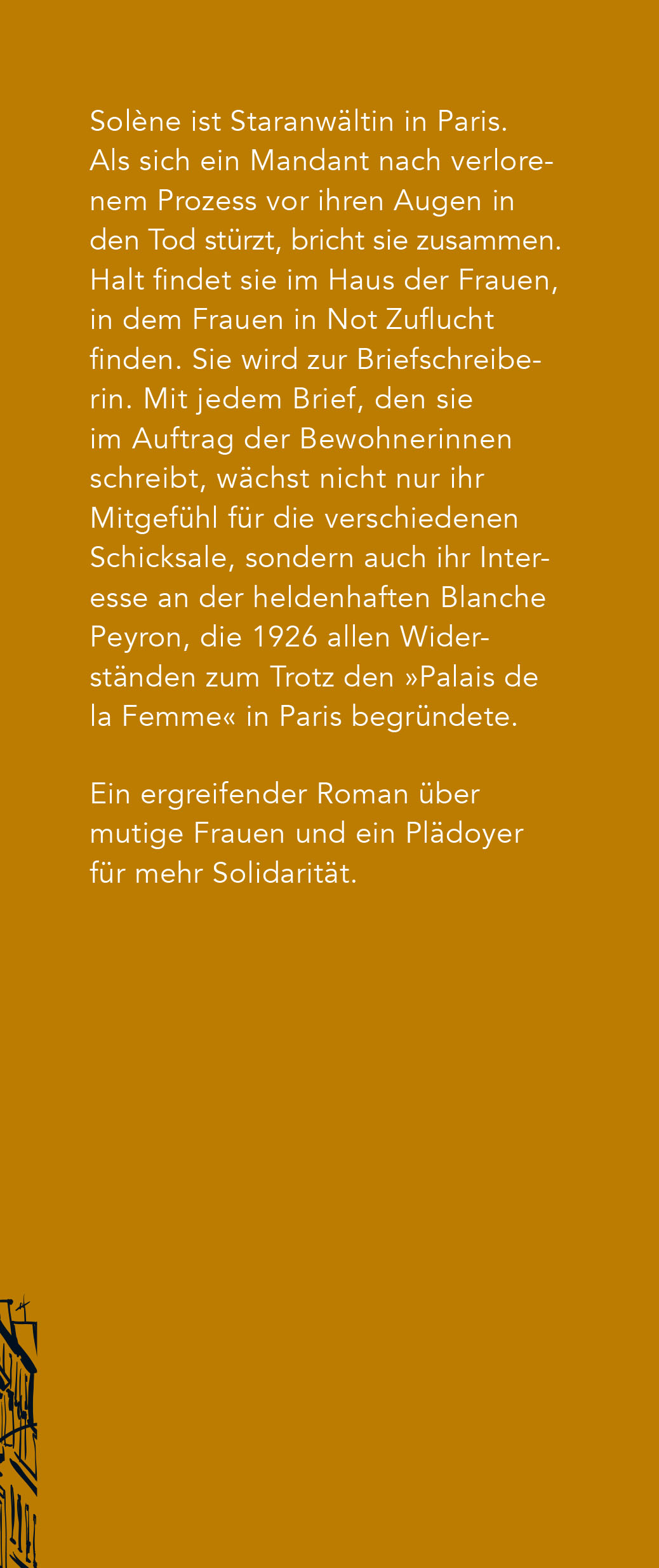 Im »Haus der Frauen« schreibt sie nun im Auftrag der Bewohnerinnen Briefe - an die Ausländerbehörde, den zurückgelassenen Sohn in Guinea, den Geliebten - und erfährt das Glück des Zusammenhalts und die Magie dieses Hauses. Weil Solène anderen hilft, hat ihr Leben wieder einen Sinn.
