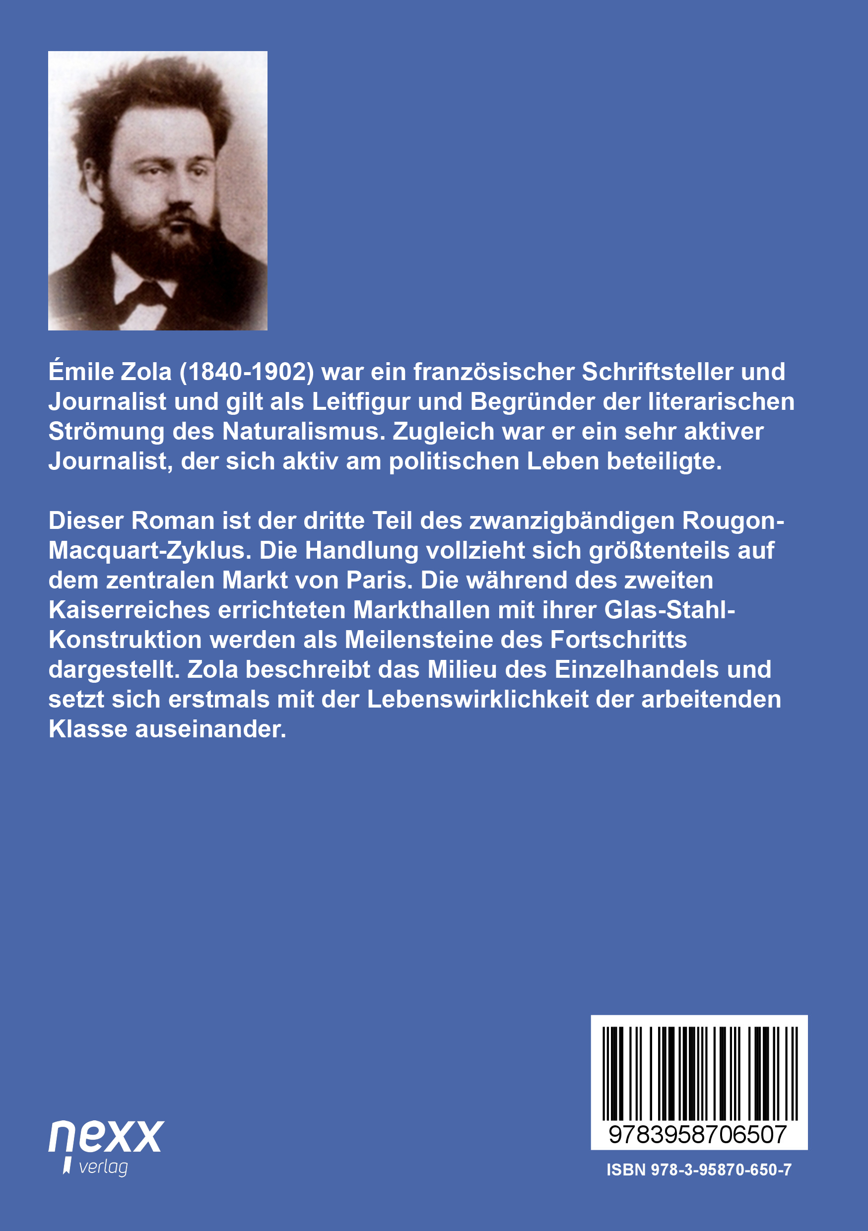 | Schlagworte | Arbeiterklasse • Bourgeoisie • Einzelhandel • Familie • Familiengeschichte • Frankreich • Intrige • kleinbürgerlich • Kleinbürgertum • Les Halles • Liebe • Markt • Markthallen • Milieu • Paria • Paris • Rougon-Macquart • Umsturz • Unterschicht • Weltliteratur • Zola • Zweites Kaiserreich |